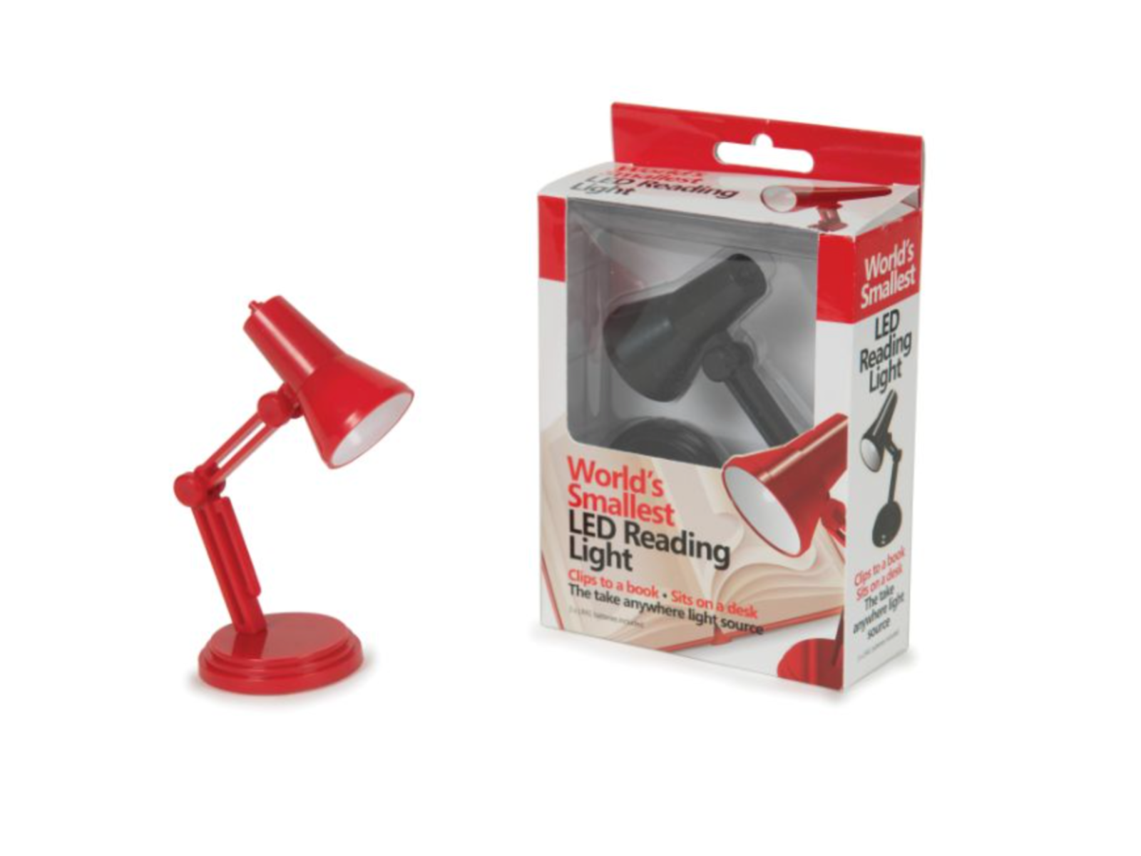 Verdens mindste LED læselampe, kan nu blive din. Lampen måler 5 x 10 x 2 cm.