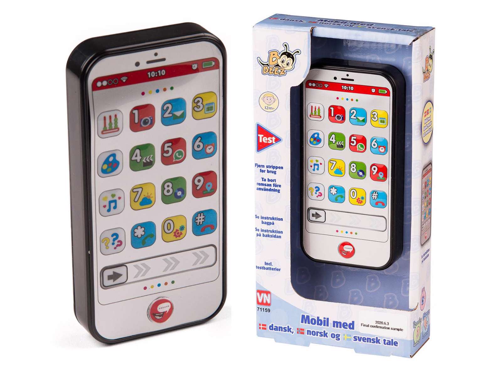 Mobiltelefon med dansk tale.