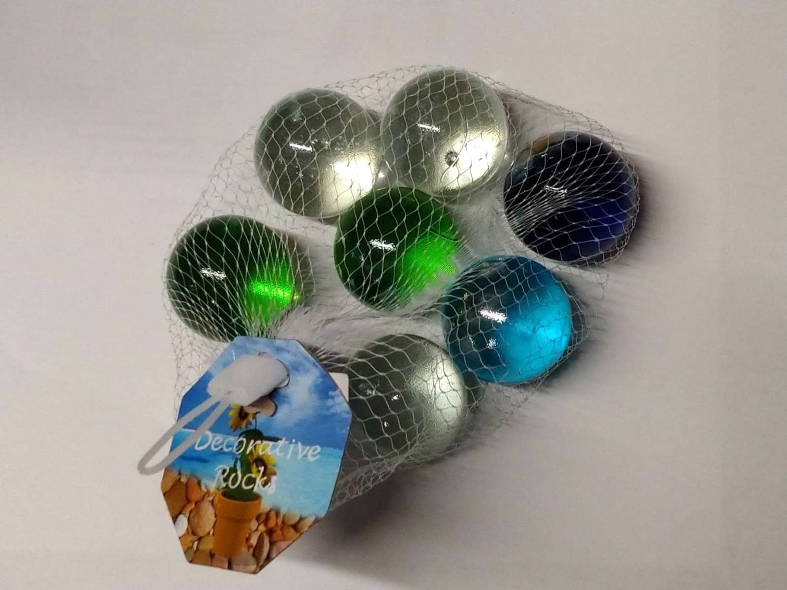 Pose med 8 store flotte glaskugler.