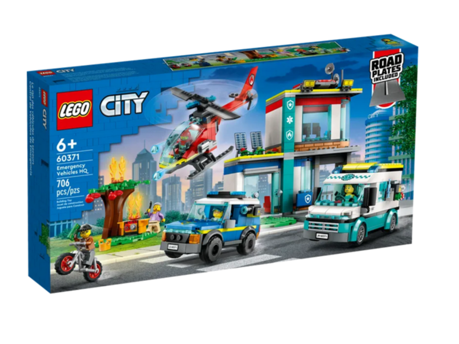 Børn kan blive en del af politiet, ambulancetjenesten og brandvæsnet med LEGO® City legesættet Udrykningsfartøjernes hovedkvarter (60371). Den 2-etagers bygning er fyldt med funktioner og detaljer, der gør legen fantasifuld, og omfatter legetøj i form af en brandslukningshelikopter, ambulance, politi-SUV og skurke-motorcykel. Bare tilsæt de 5 minifigurer, og lad legen begynde.