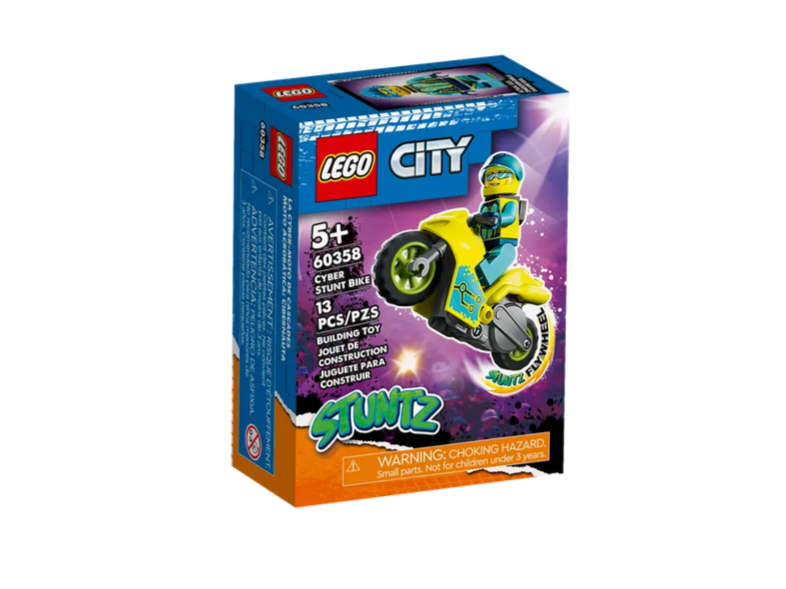 Giv børns leg ekstra energi med det sjove LEGO® City sæt Cyber-stuntmotorcykel (60358) til børn fra 5 år. Det indeholder en svinghjulsdrevet legetøjsmotorcykel, der kan udføre seje hop og stunts. Bare tilføj LEGO City Stuntz-køreren for at få nonstop stuntaction.