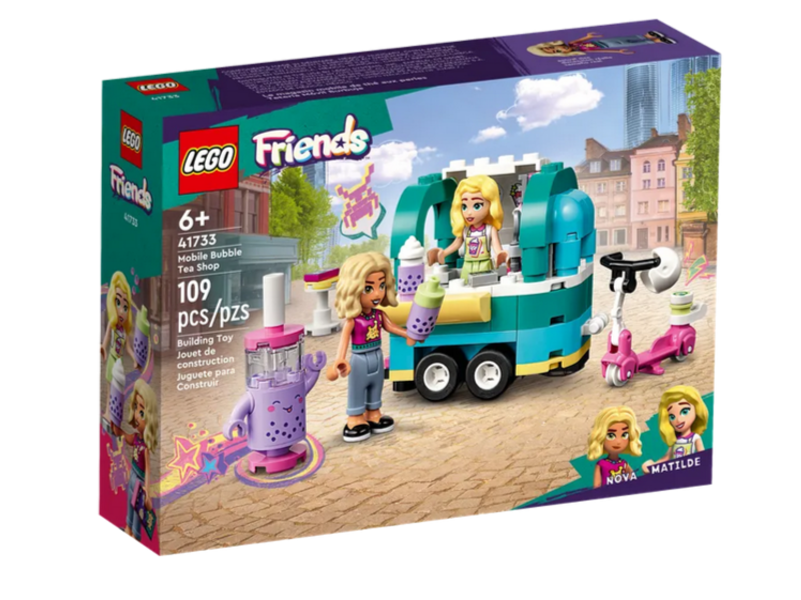 Kreative børn fra 6 år kan få masser af sjov med LEGO® Friends sættet Mobil bubble tea-butik (41733). Vognen med bubble tea omfatter en cool elscooter. Taget kan åbnes til det indre, hvor børn kan lave bubble tea-kreationer med gamingvennerne Nova og Matilde. Nova har tusindvis af følgere online, men hun kan godt være lidt genert – så hun er superglad for at have fundet en ven i Matilde, der også er gamer. Sættet indeholder tilbehør til kreativ leg, f.eks. flødeskum, 2 bubble tea-flasker og en funktion til at ryste og blande ingredienserne. Der er også et lille kasseapparat samt et bord og en maskot med et menukort.