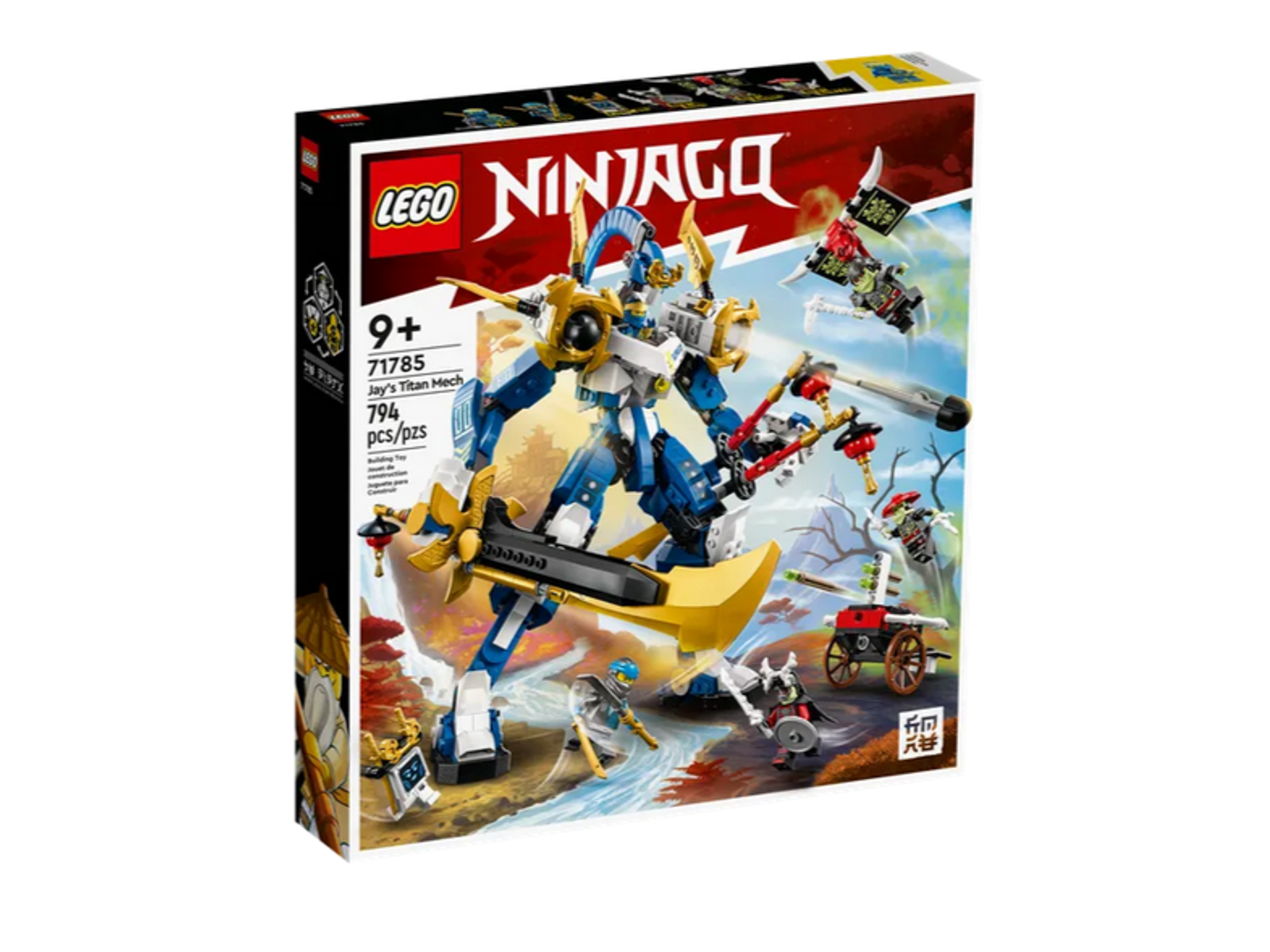 - Fyldt med detaljer – Den bevægelige mech-robot har et cockpit i brystet til Jay, en stor drageklinge, 2 katanaer og 2 skydere monteret på sine skuldre, så børn kan udspille actionfyldt rolleleg