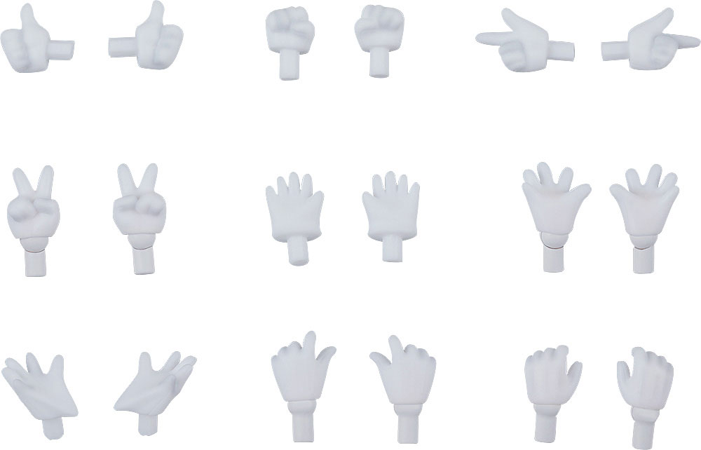 Presenting a new hand parts set for use with your Nendoroid Dolls! These hands can be used with your Nendoroids as well! 5 different pairs of standard hands are included featuring various expressive hand parts. 4 additional pairs with joints at the wrists are also included, making for a total of 9 pairs of hand parts. Enjoy using them with your Nendoroid Dolls and Nendoroids!