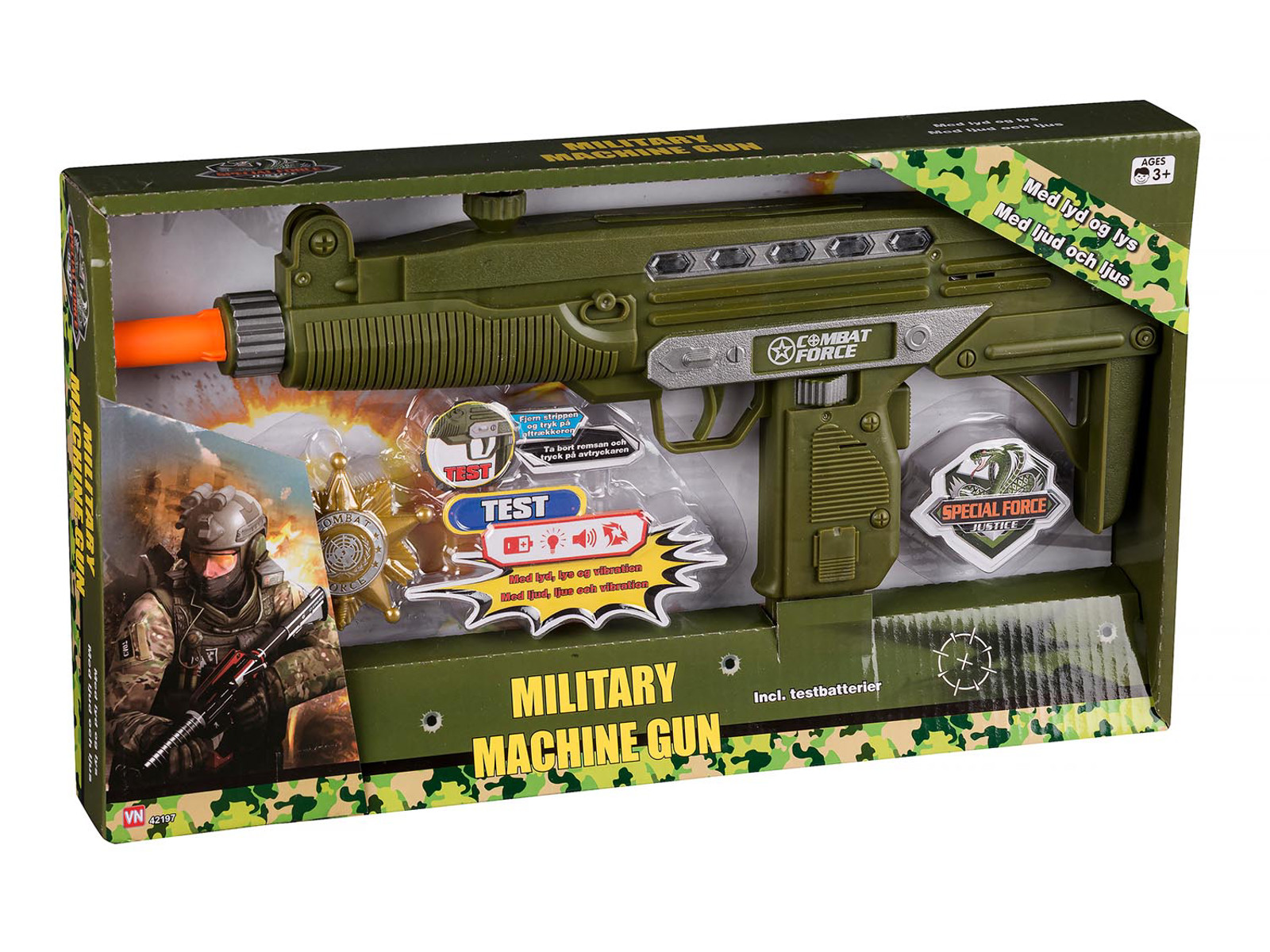 Militær maskinpistol med lys, lyd og vibrationer