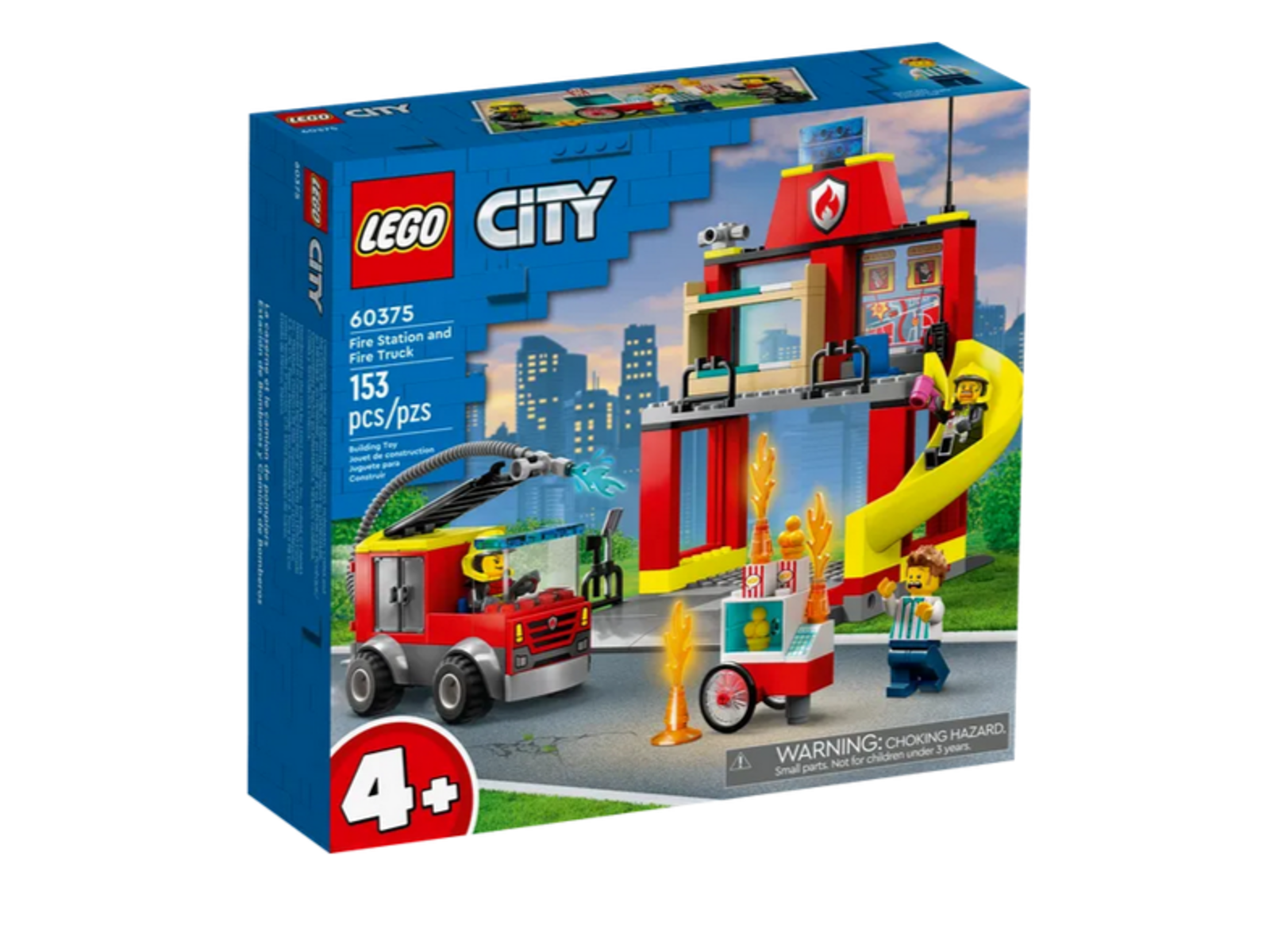 Sæt gang i børns fantasi med LEGO® City legesættet Brandstation og brandbil (60375), der omfatter legetøj i form af en brandstation med soverum, garage og en sjov rutsjebane. Børn får også en sej brandbil med en fleksibel slange og stige på taget. Bare tilsæt popcornvognen, et par LEGO flammer og minifigurerne af sælgeren og brandfolkene for at få timevis af actionfyldt leg.