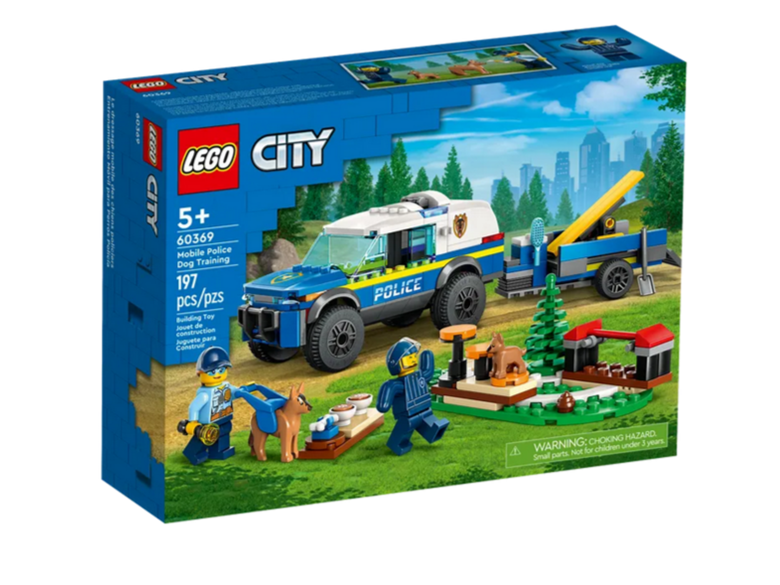 Børn og hundefans fra 5 år vil elske LEGO® City legesættet Mobil politihundetræning (60369). Sættet er fyldt med inspiration til fantasifuld leg og omfatter en K9-SUV, trailer og 3 aktiviteter til hundetræning, bl.a. en vippe, bom og potetrin. Bare tilføj politibetjentene samt figurerne af hund og hvalp, og lad den sjove leg begynde.
