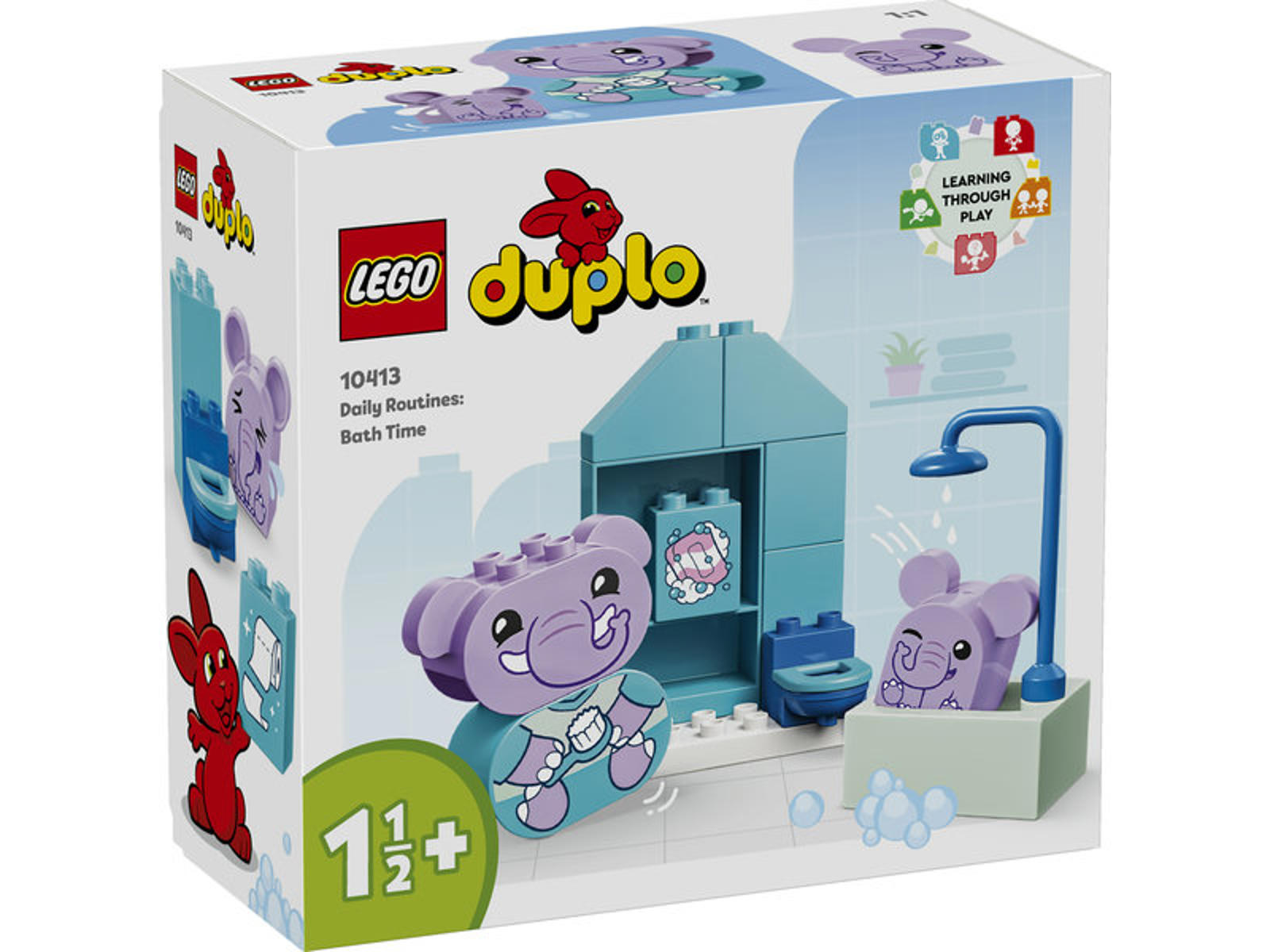 Læringslegetøj til små børn – Indeholder 2 legetøjselefanter samt et toilet, et bad og en bruser bygget af slidstærke LEGO® DUPLO® klodser og elementer, så børn kan udspille sjove baderutiner.