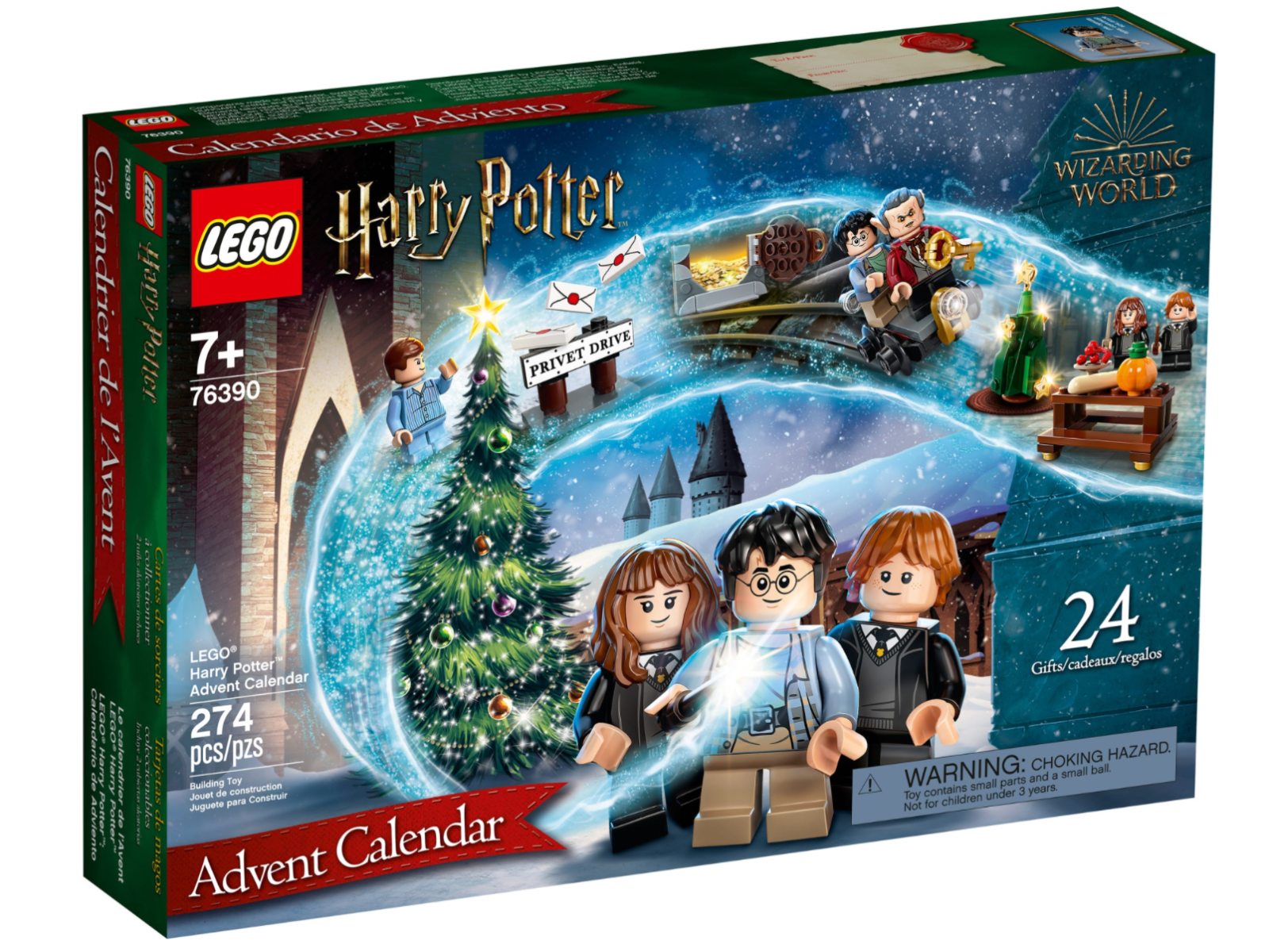 Julekalenderen indeholder 6 minifigurer: Harry Potter, Ron Weasley, Hermione Granger, Draco Malfoy, Dudley Dursley og Griphook - plus masser af spændende genstande og fortryllende tilbehør fra Harry Potter filmene.