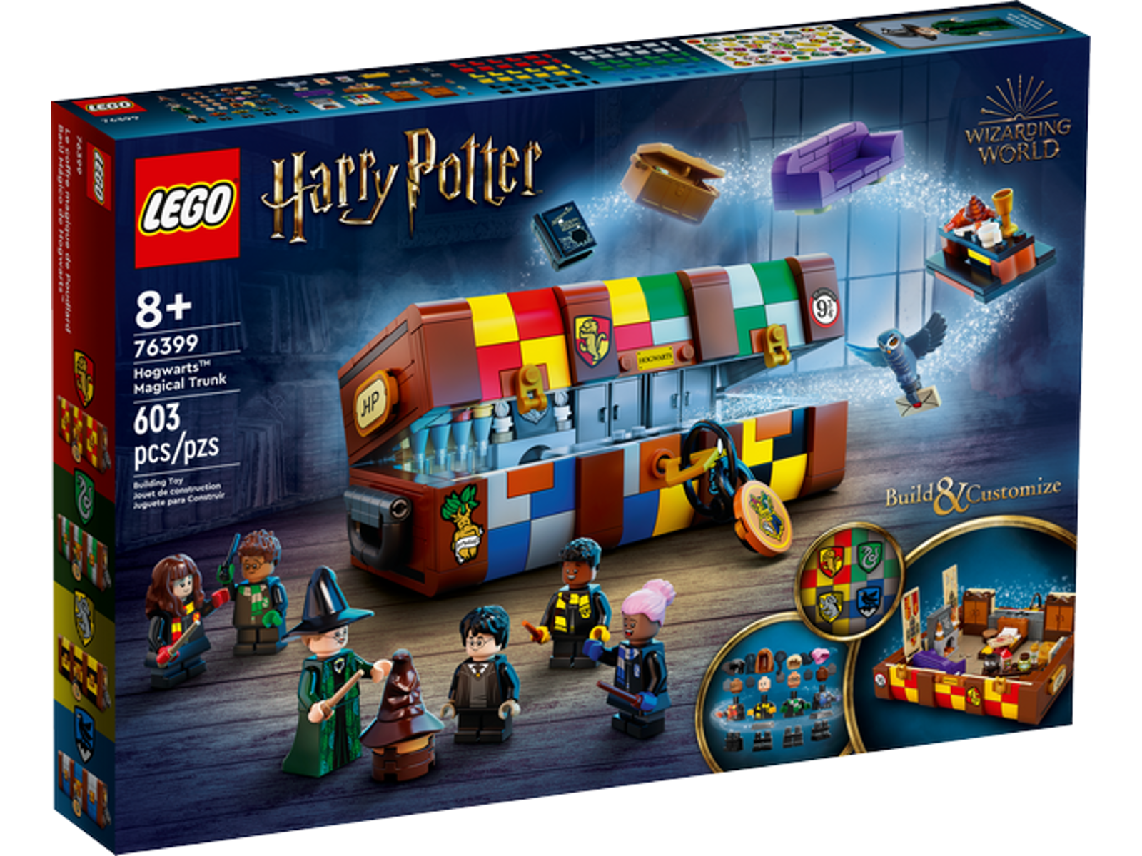 Er du kommet til at lave en "Ron"? Man skulle tro, Ron's ødelagte tryllestav havde været på spil her. Du kan nemlig mixe og tilpasse den magiske kuffert, på kryds og tværs, lige efter din fantasi. I kufferten er der klodser og tilbehør til at genskabe 3 klassiske filmhistorier: Fordelingsceremonien, en fest i storsalen samt opholdsrummet. Tilbehøret består af: Fordelingshatten, eliksirer, en kedel, en eliksirbog, Røverkortet, Bertie Botts multismagsbønner, avisen Ordkløveren, pokaler, småkager, et skakbræt og en ugle. Derudover er der selvfølgelig minifigurer, som du kan kombinere delene fra for at bygge nye eller velkendte figurer.