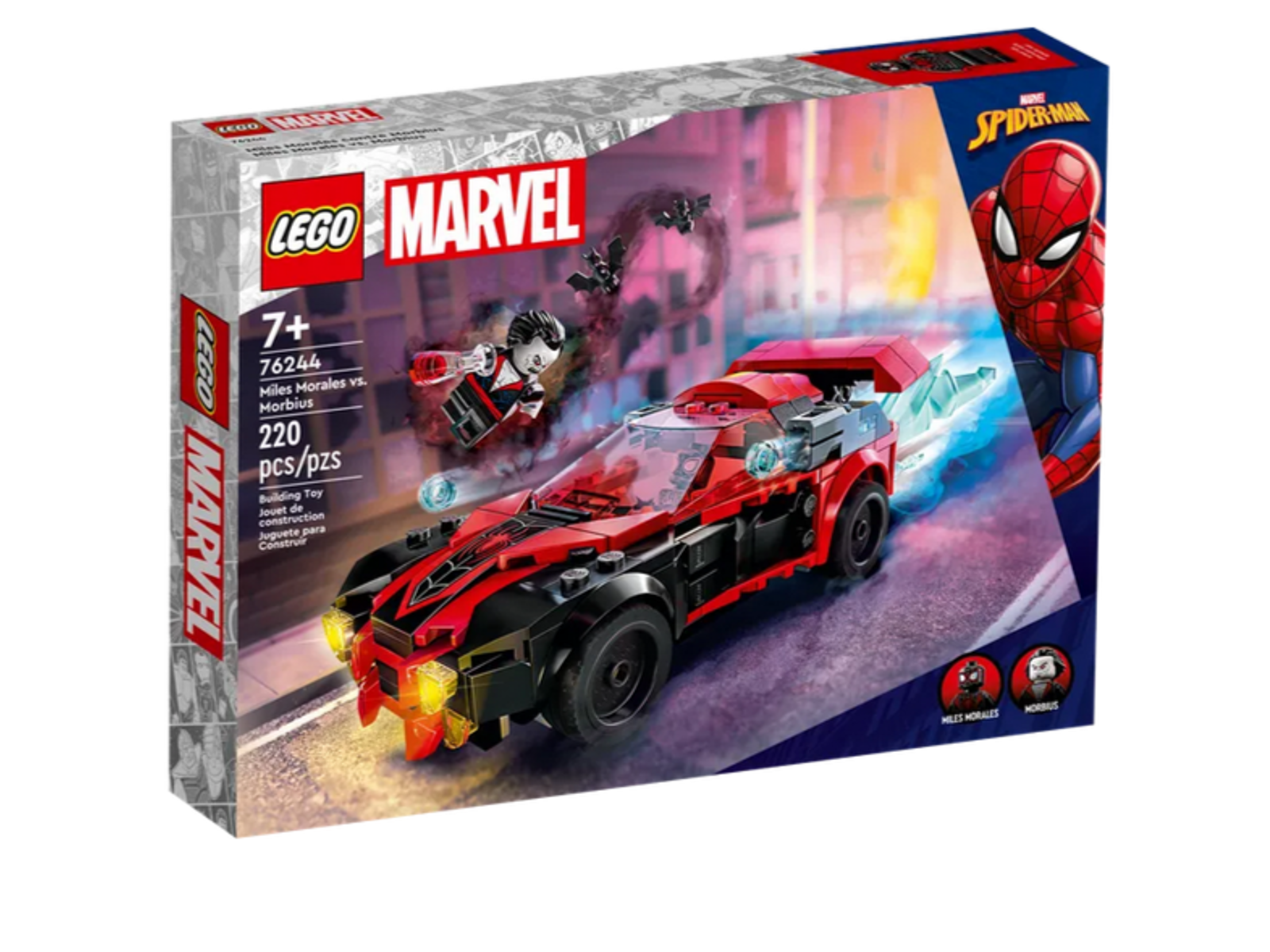 Giv børn fra 7 år Marvel-eventyr og en supersej bil mellem hænderne med det actionfyldte LEGO® Marvel sæt Miles Morales mod Morbius (76244).
