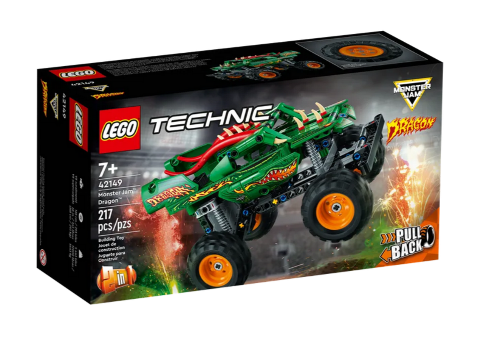 Børn fra 7 år, der elsker Monster Jam™, får masser at opdage med LEGO® Technic monstertrucken Monster Jam Dragon™ (42149) med pull-back-funktion. Den omfatter fantastiske dragedetaljer såsom pigge og horn. Med realistisk grafik og flotte farver kan børn bruge denne modelbil til at genskabe yndlingsscener fra Monster Jam-arenaen.