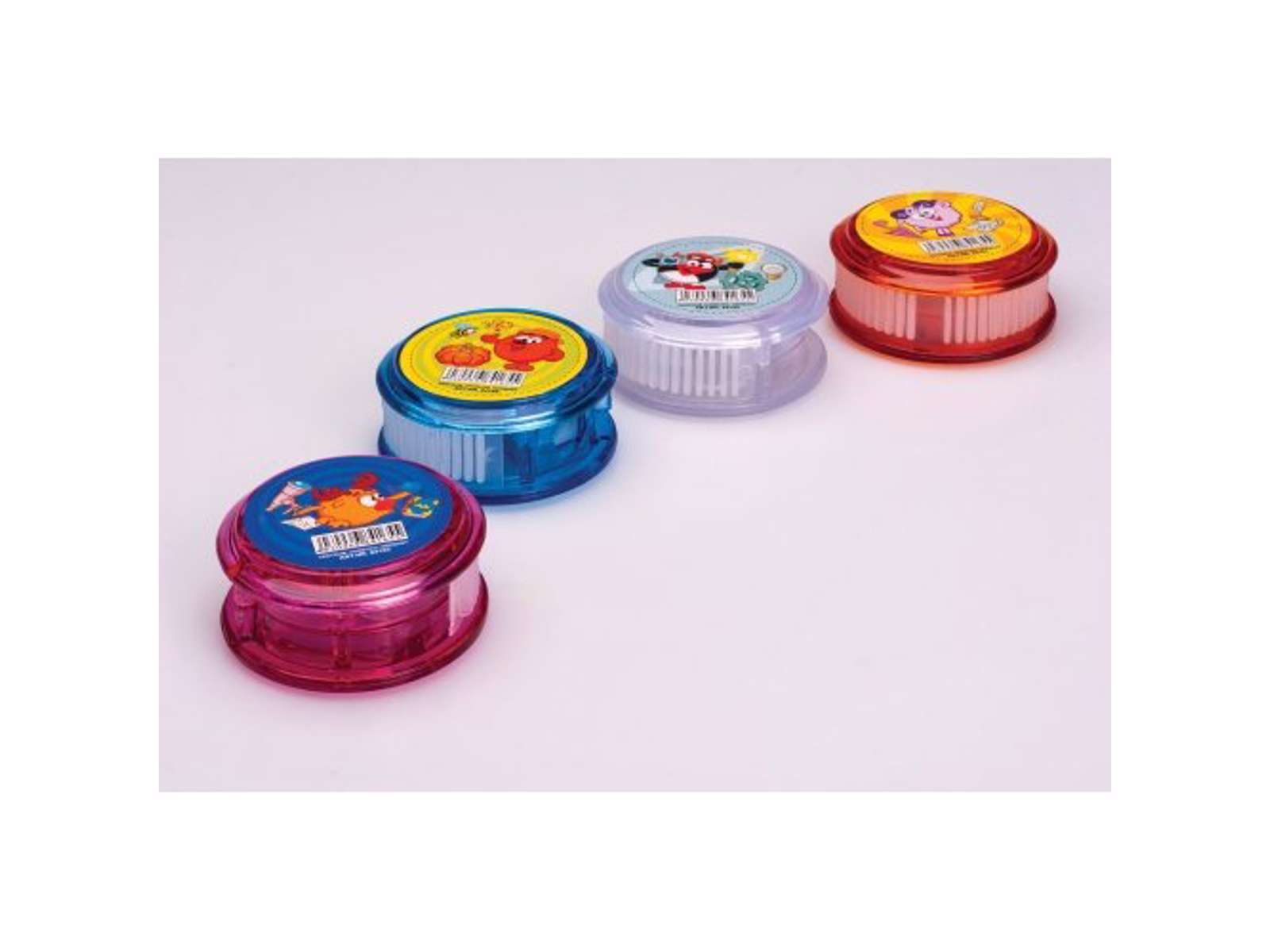 Kikoriki blyantspidser med forskellige farver og motiver. Pris pr stk 10 kr.