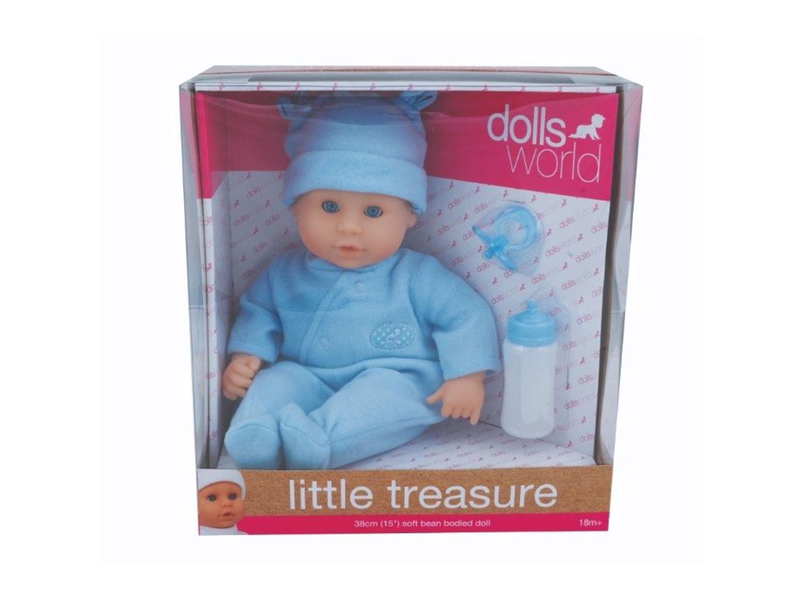 Little Treasure i blåt tøj på 38 cm fra Dolls World