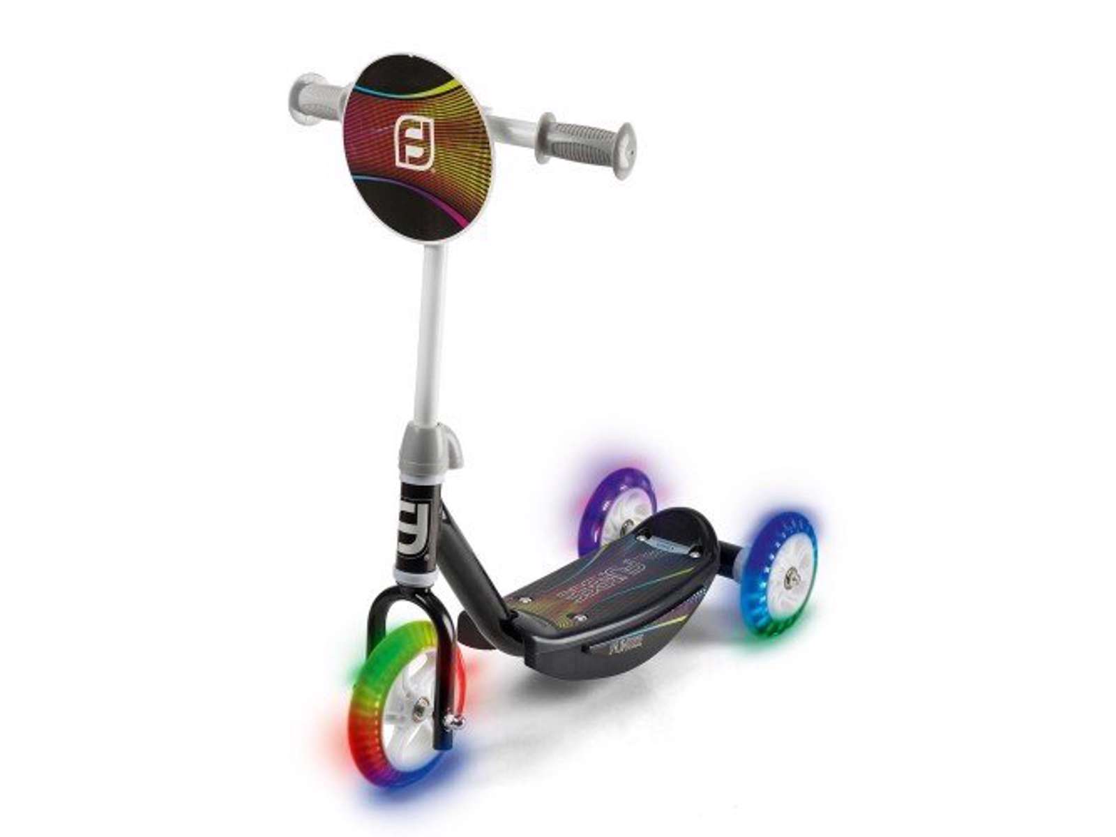 Der er LED-lys i hjulene og fart over feltet, når man kommer kørende på dette 3-hjulet løbehjul.