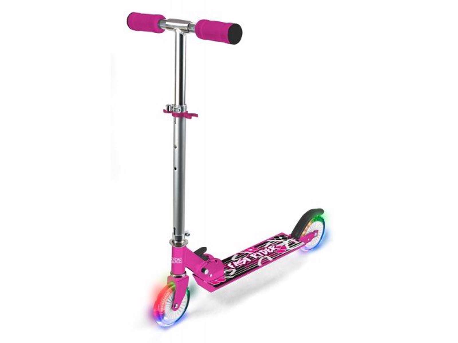 Pink løbehjul med LED-lys i hjulene, der lyser op når du kører.