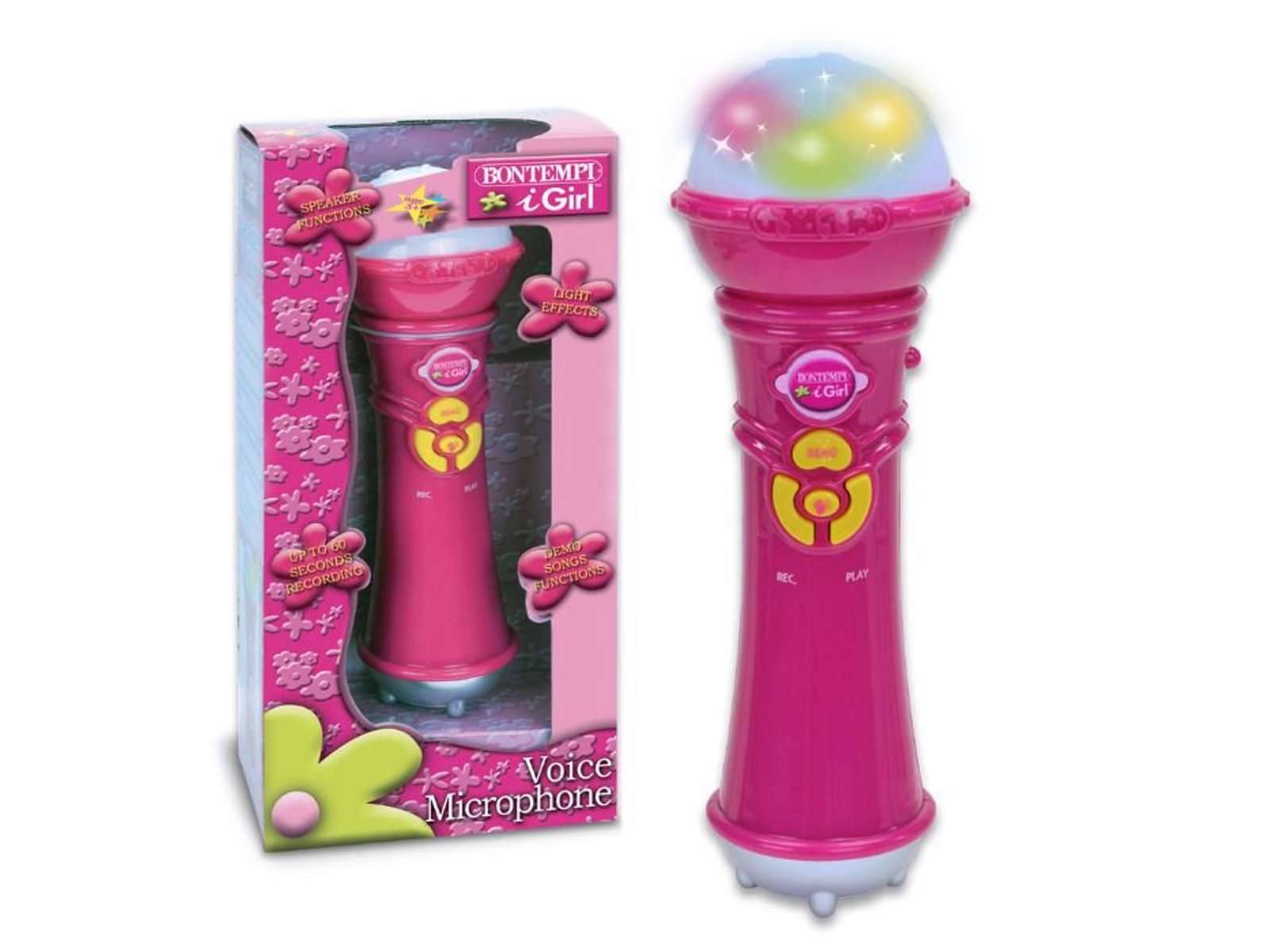 Du kan optage op til 60 sekunder, spille masser af melodier og så har mikrofonen tilmed lyseffekter.