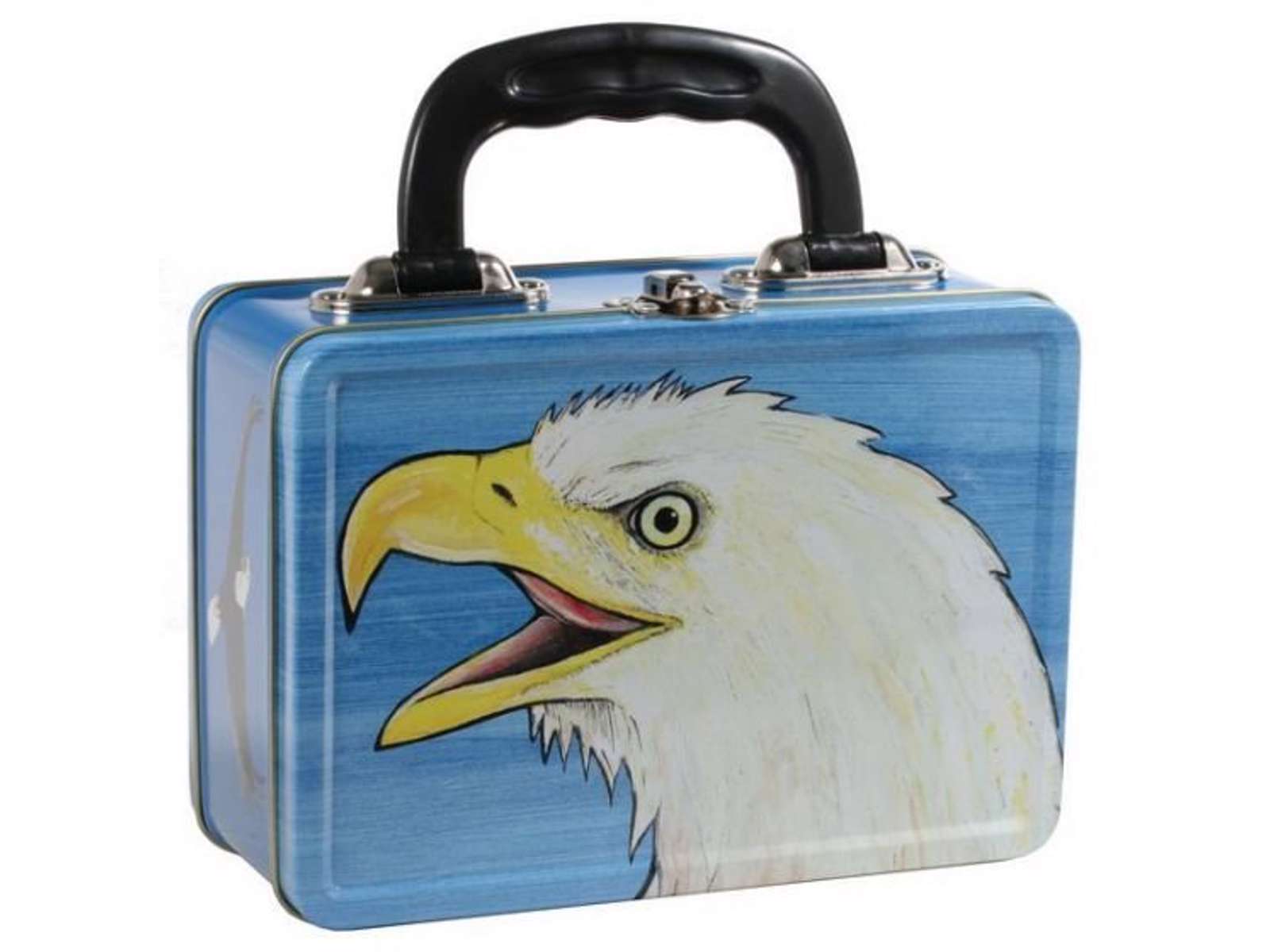 Denne madkasse er prydet med et flot, hvidt ørnehoved!
