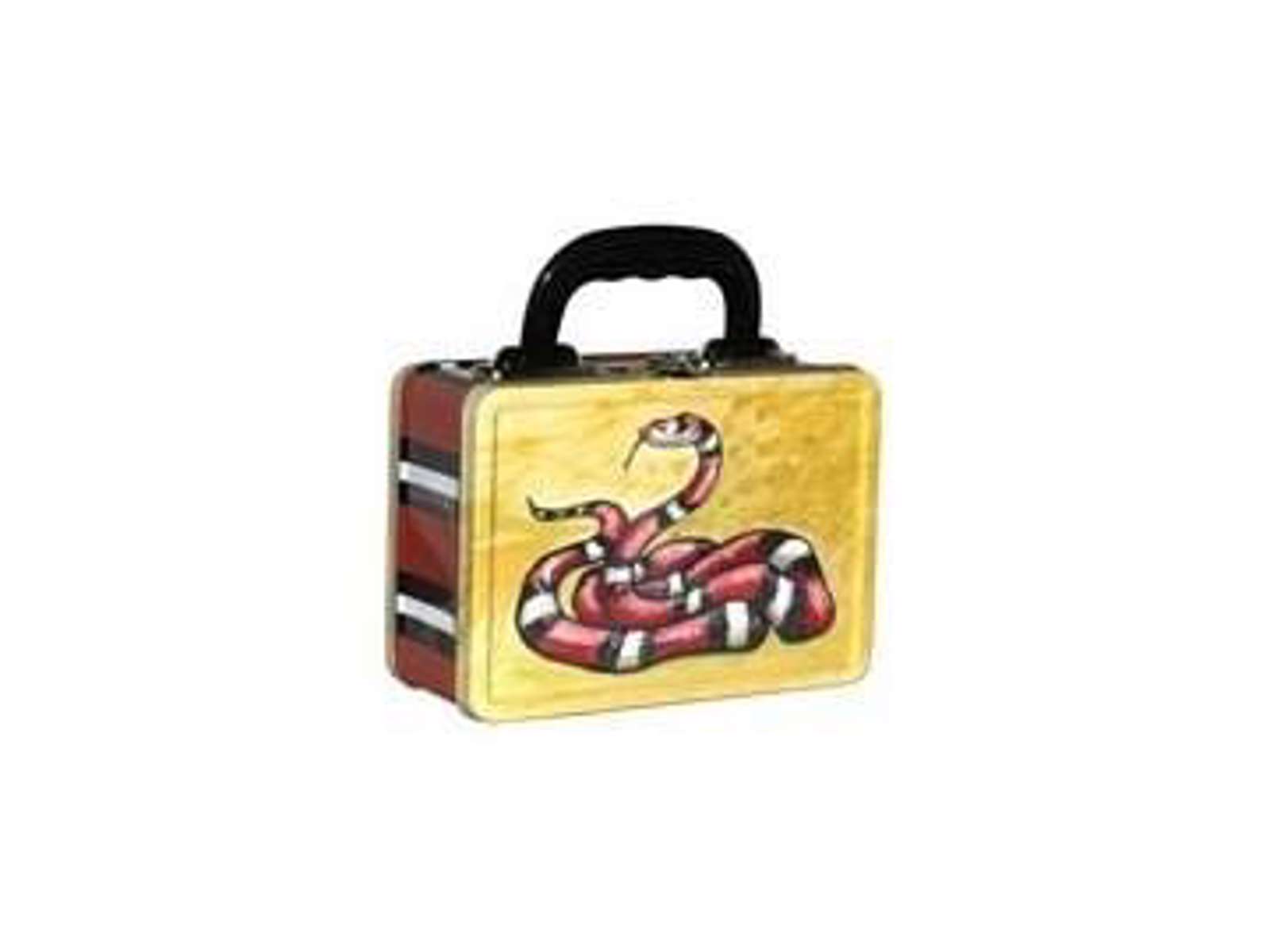 Denne madkasse er prydet med en farlig rød, hvid og sort slange!