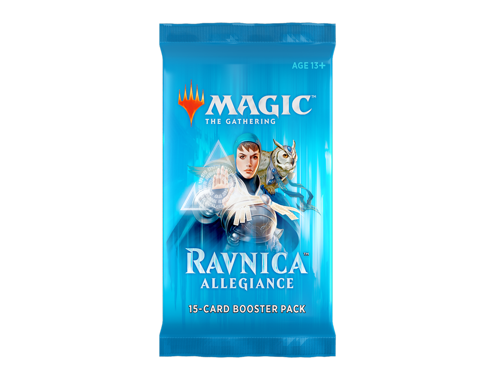 En Ravnica Alleciance booster indeholder 11 common kort, 3 uncommon og et rare eller mythic rare. I nogen af boostersne kan man være heldig og få et "foil" kort, af alle sjældenheder, i stedet for et common kort.