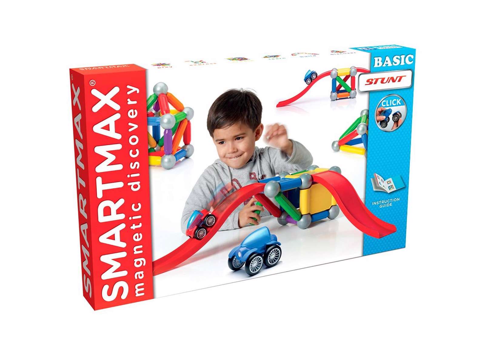 Inkluderer køretøjer og ramper og farverig vejledning til at sammensætte SmartMax.