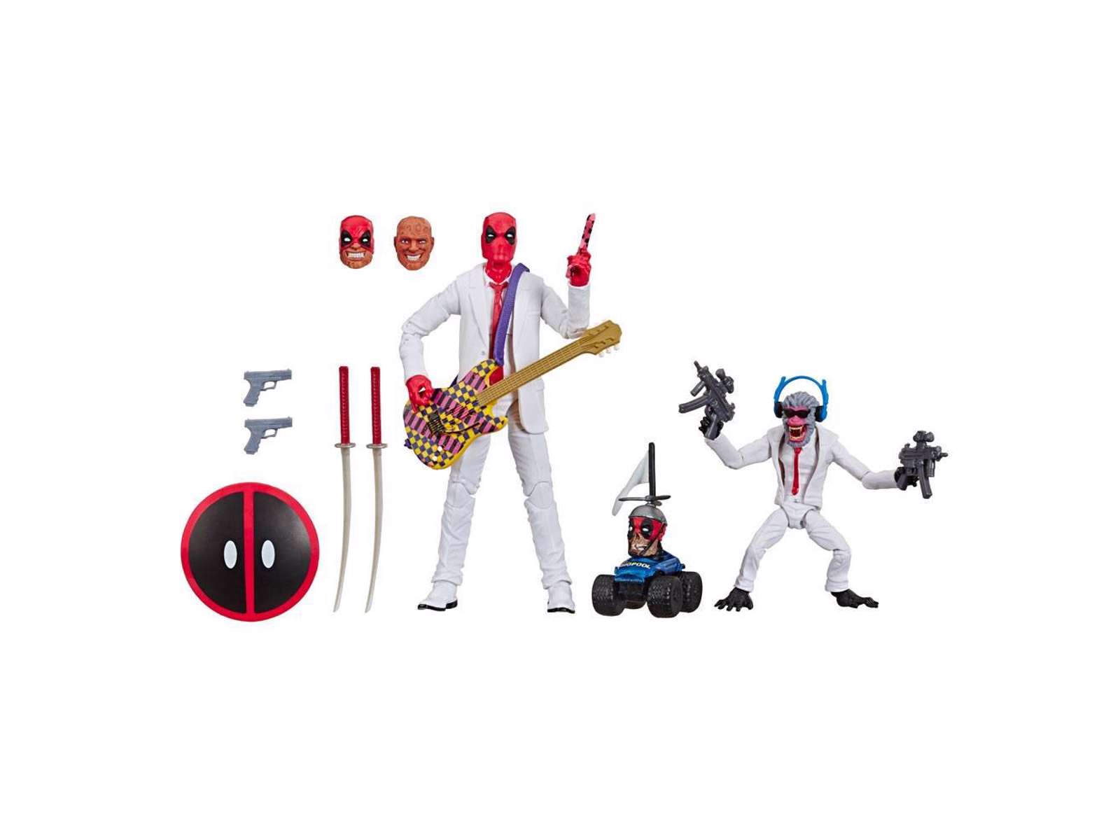 Deadpool kommer med 2 ekstra hoveder og våben samt tilbehør.