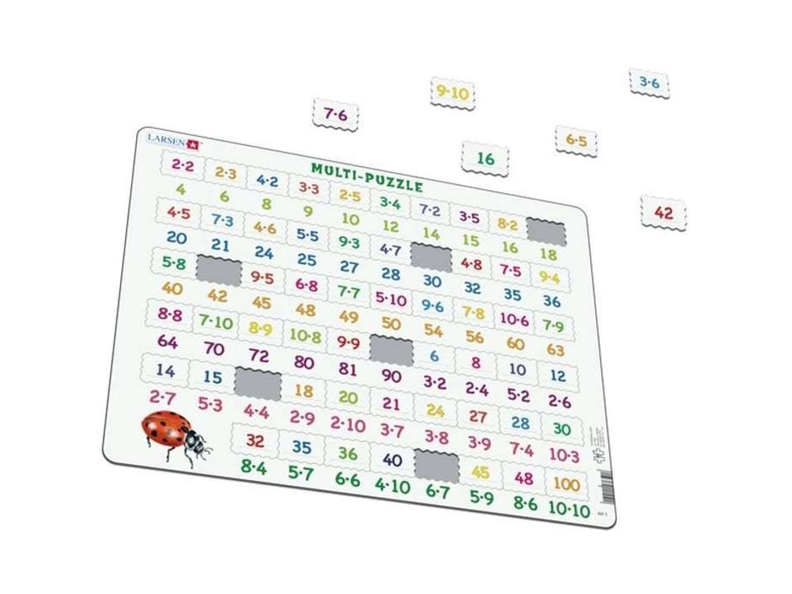 Lær at gange med dette seje puslespil. Det kommer med 59 brikker i hårdt karton.