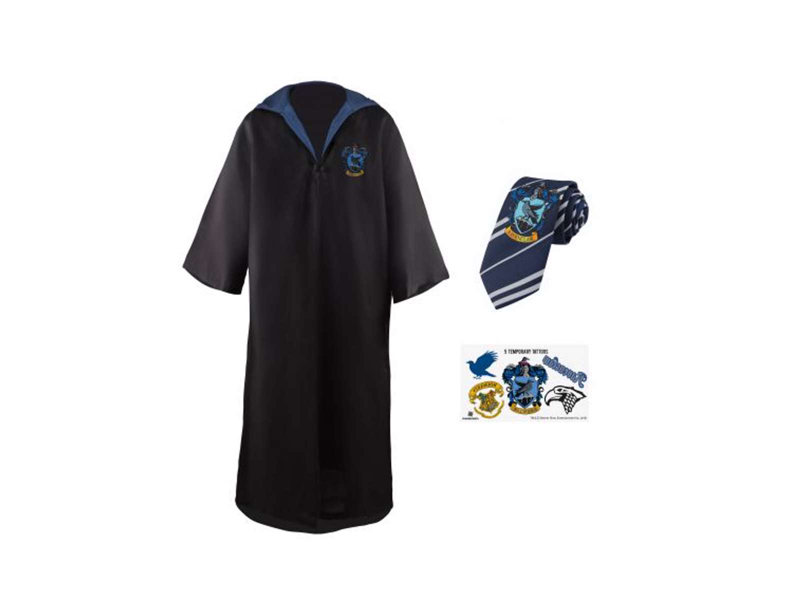Her får du en flot Ravenclaw kappe, et slips og et ark tatoveringer.