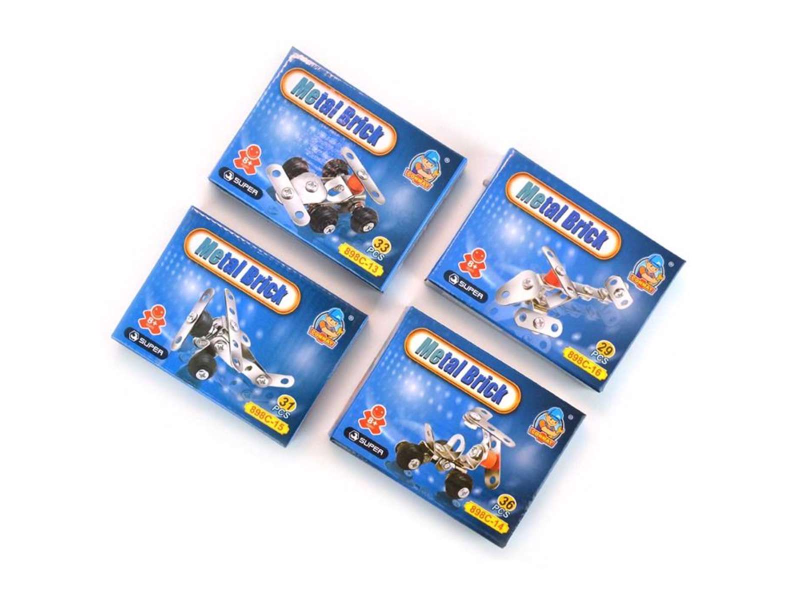 Fedt byggesæt i metal hvor du kan bygge din egen model ud af skruer, møtrikker og metalstykker.