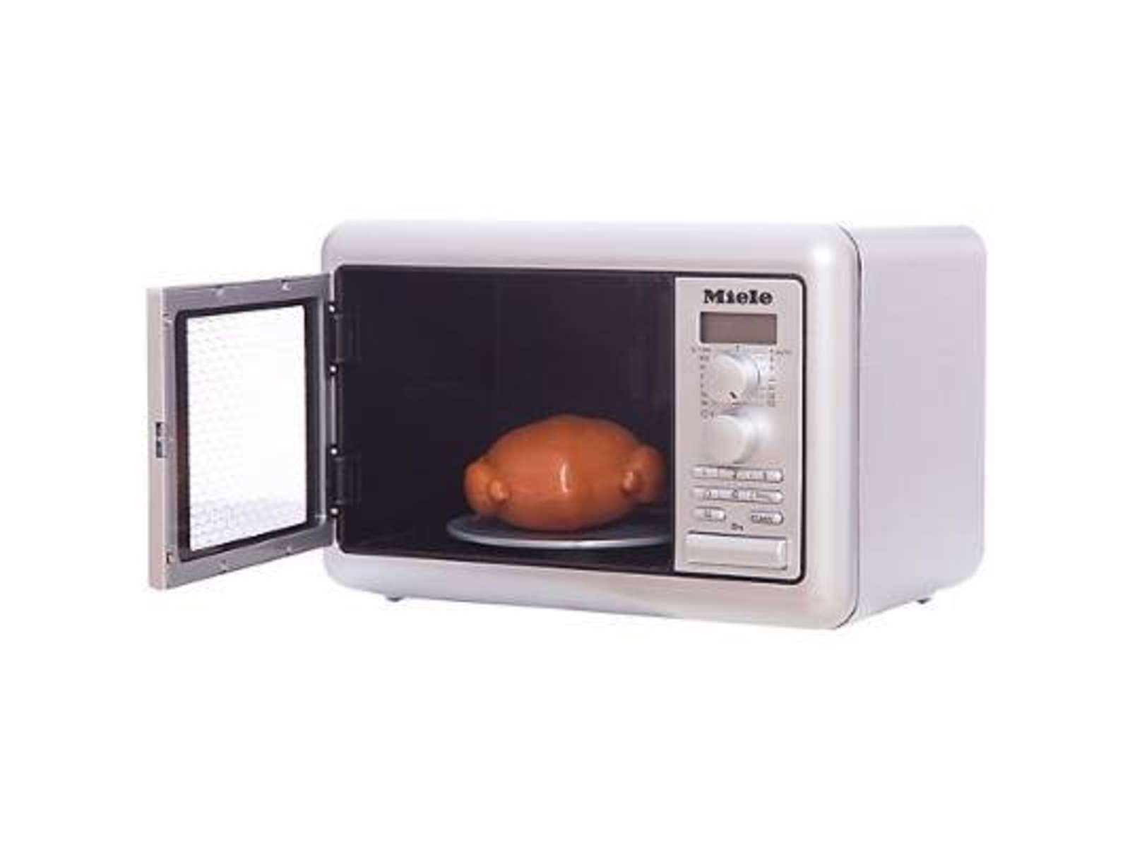 Sjov mikrobølgeovn fra Miele. Den kommer med en kylling og har timer. Den måler 16 x 25 cm. Anbefalet alder fra 3 år.
