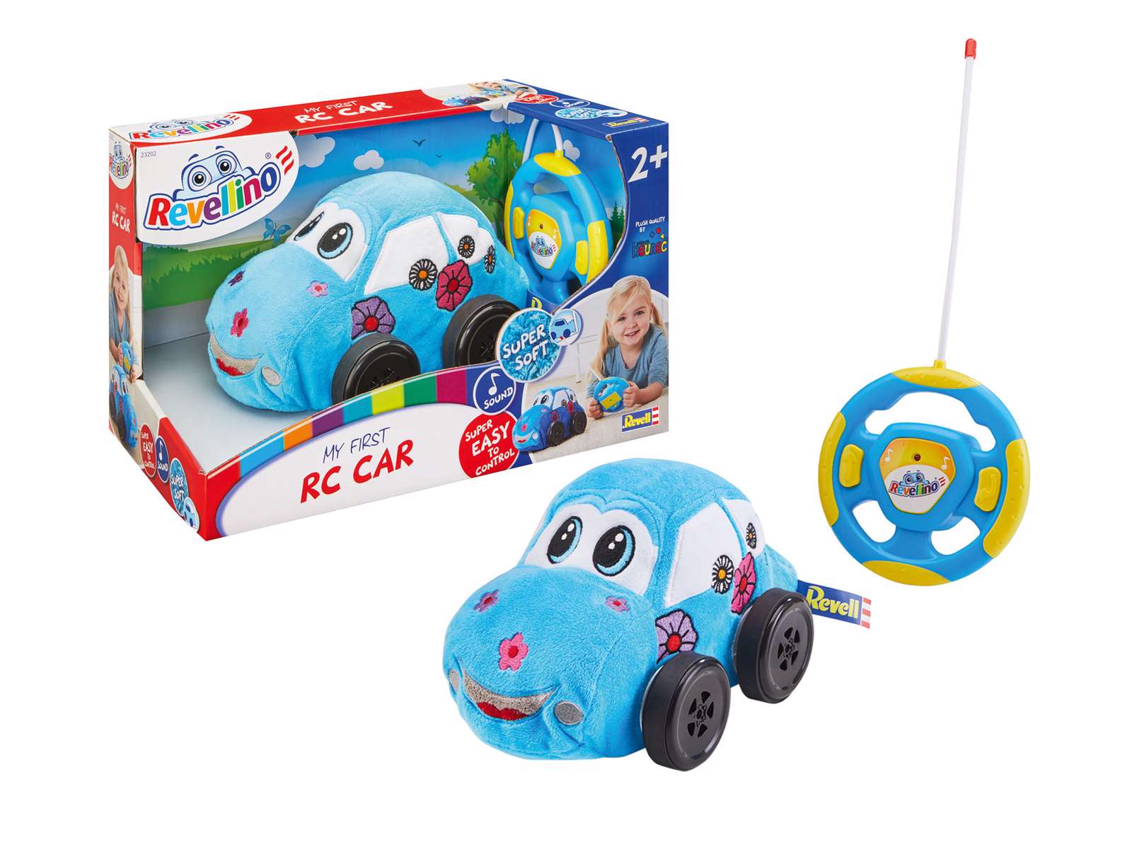 My First R/C Car er designet af Revell specielt til børn helt ned fra 2-årsalderen. Den første fjernstyrede bil er lavet af blødt, lyseblåt plys-materiale udvendigt, som er aftageligt, så det kan vaskes. Det bløde stof gør bilen rar at røre ved, og samtidig sker der ingen skader, når bilen kører ind i noget. Til bilen hører en meget børnevenlig fjernbetjening, som gør den perfekt at kontrollere selv for små børn - der kan køres fremad, bagud og til siden! Fjernbetjeningen har også en knap med lyd af bilhorn, så der kan dyttes og båttes, mens der ræses afsted. My First R/C Car er den perfekte introduktion til fjernstyret legetøj!