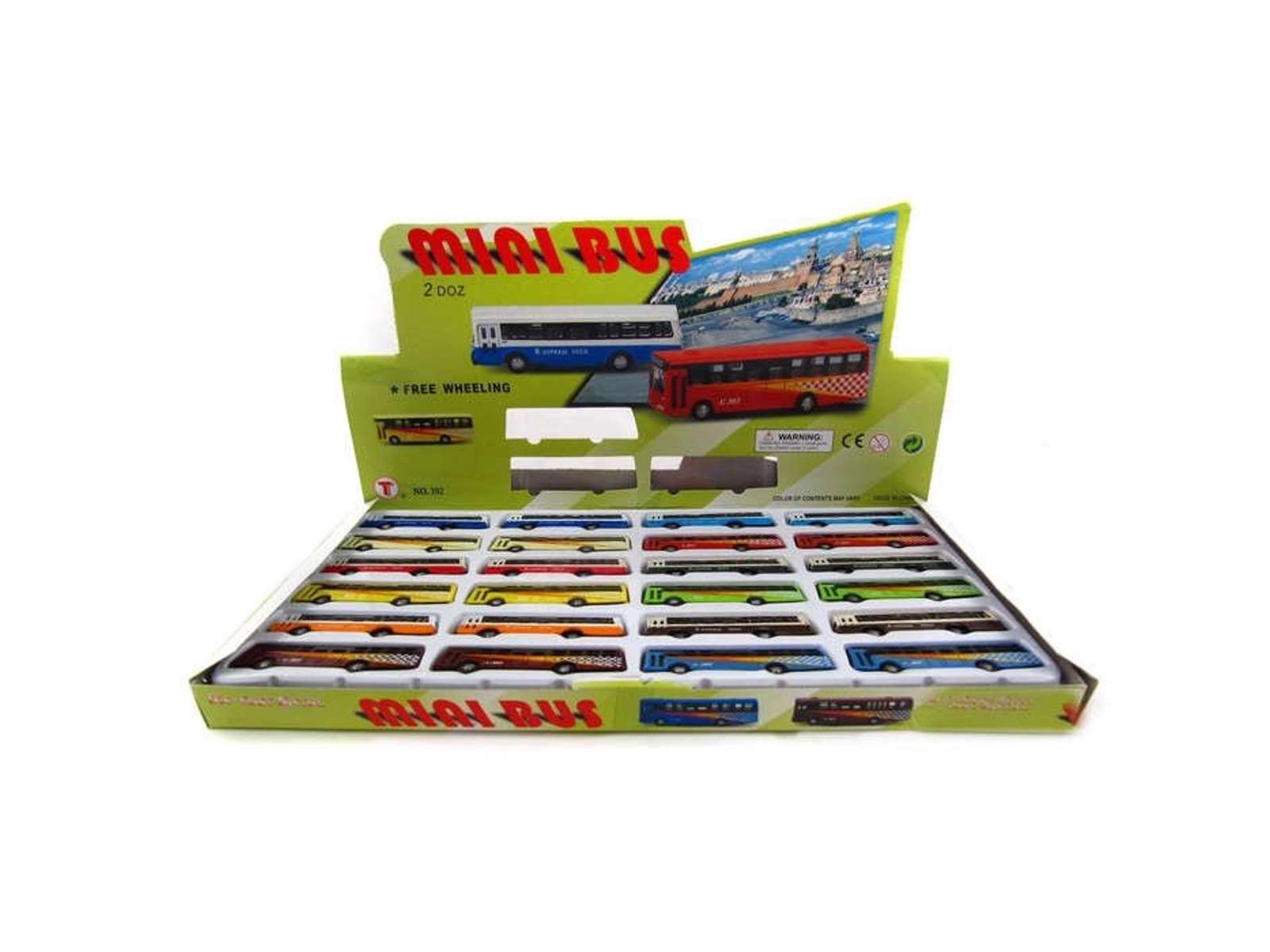 Fin lille bus i metal. Den måler 7 cm. Kommer i 6 forskellige farver. Kontakt butikken for lagerstatus hvis en bestemt ønskes. Prisen er for 1 bus.