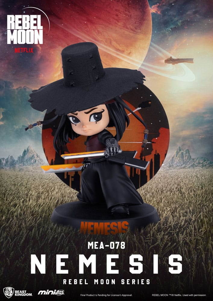 To celebrate Zack Snyder's vision, Beast Kingdom is expanding into this new IP market with its classic 3-inch Mini Egg Attack series, launching a limited edition of collectible figures from the Netflix sci-fi film "Rebel Moon". This series features four core characters from the movie, each with unique accessories and costumes, bringing to miniature life the characters from the series in cute, mini statues while retaining their core design and character traits. Join these brave warriors in protecting the peace of the empire.