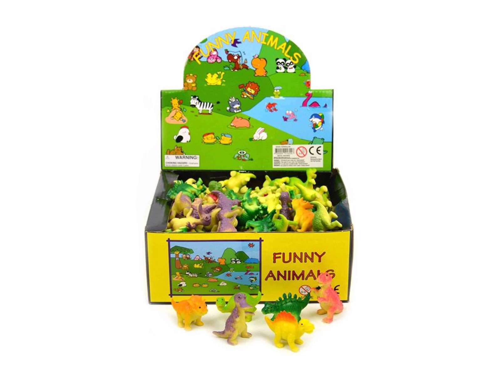Sjove dinosaurer af mellemhård plastik. Dino'erne måler mellem 2 og 4 cm i højden. Der er mange forskellige at vælge imellem. Prisen er pr. stk.