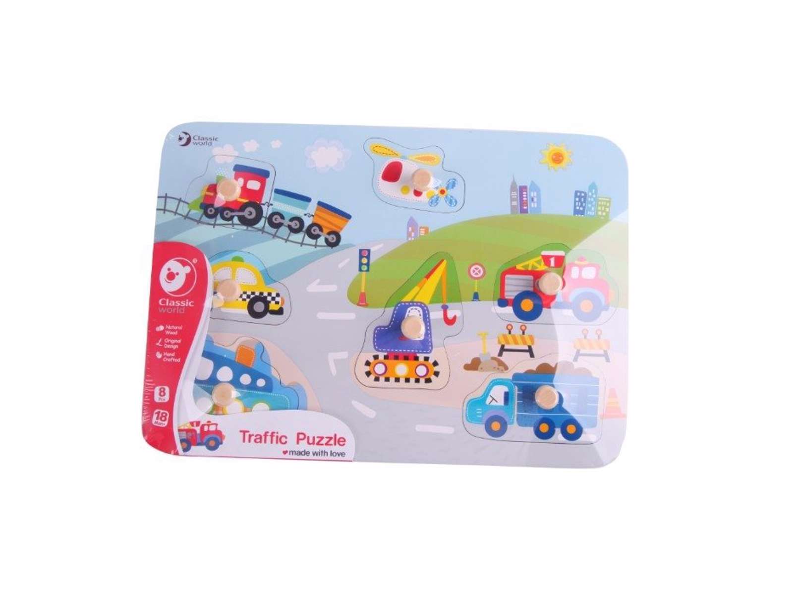 Trafikpuslespil i træ med 8 dele på 30 cm