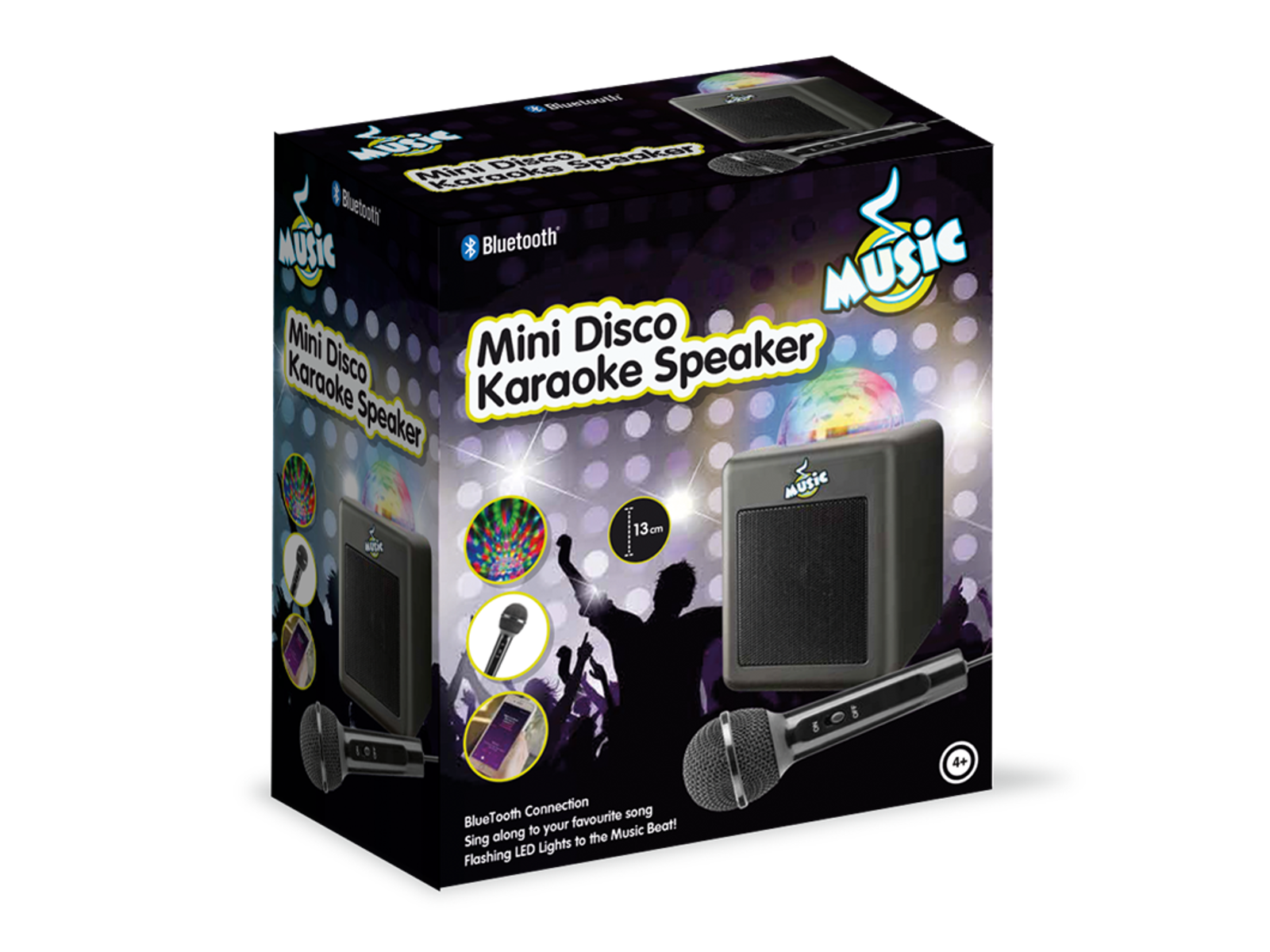 Nu kan du holde den helt store koncert med denne mikrofon og discokugle. Mikrofonen kan bruges i en radius på op til 10 meter, og den holder i op til 3 timer pr. opladning.