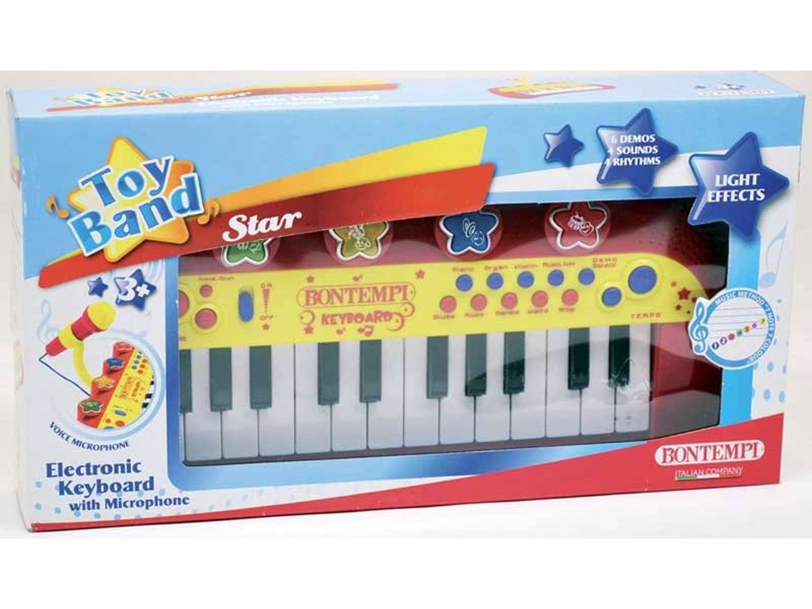 Et godt begynder keyboard til de små fra Bontempi. Det elektroniske keyboard har lyseffekter, 24 tangenter, monterbar mikrofon med stativ og kan også spille forskellige forprogrammerede melodier. Kræver 3 x AA batterier som ikke er inkluderet Anbefalet fra 3 år.
