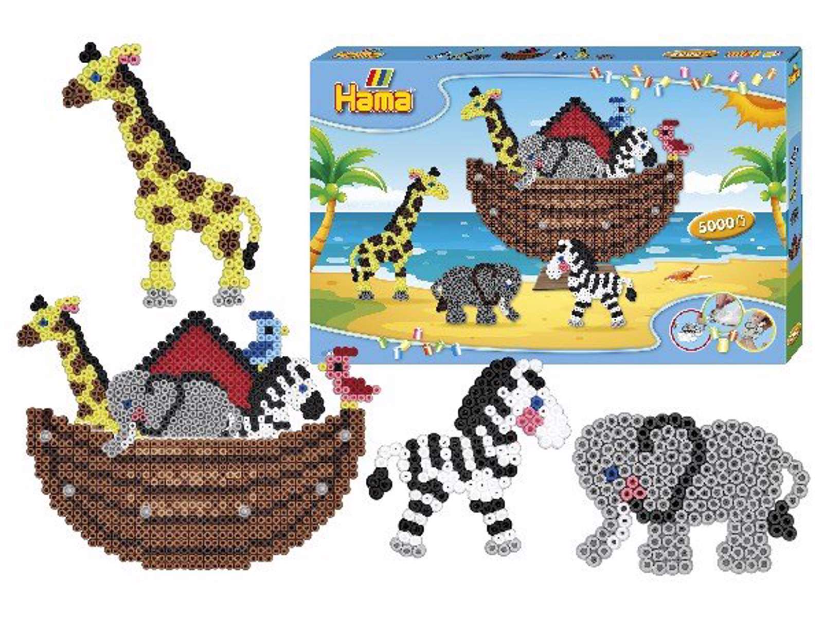 Lav fine dyr fra Noah's ark i Hama perler. Æsken indeholder cirks 5000 midi perler, 5 plader, motivark, vejledning og strygepapir.