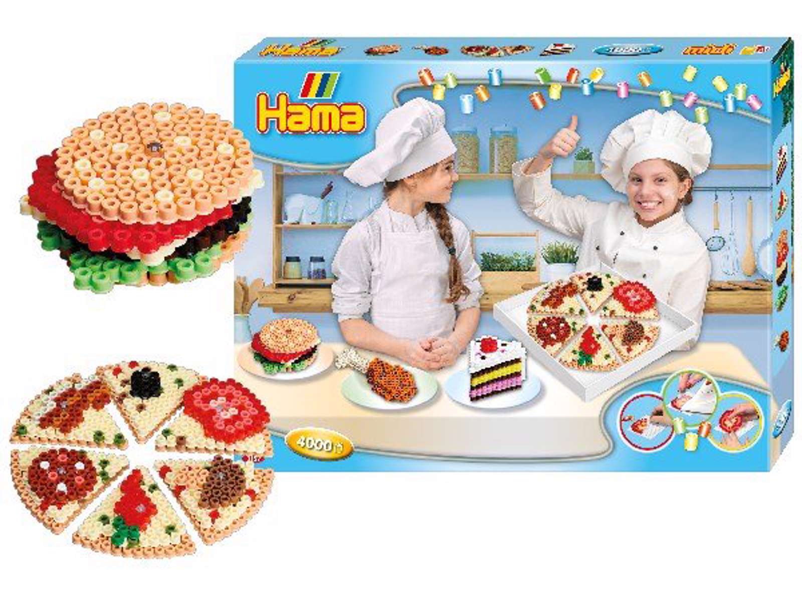 Lav lækker pizza, kage, burger og mange andre lækkerier i Hama perler.