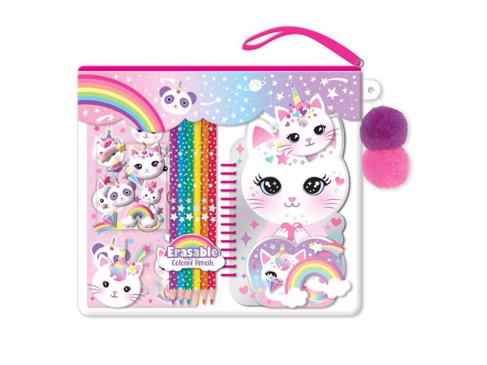 Glitterkat notesbog med farveblyanter, taske og klistermærker