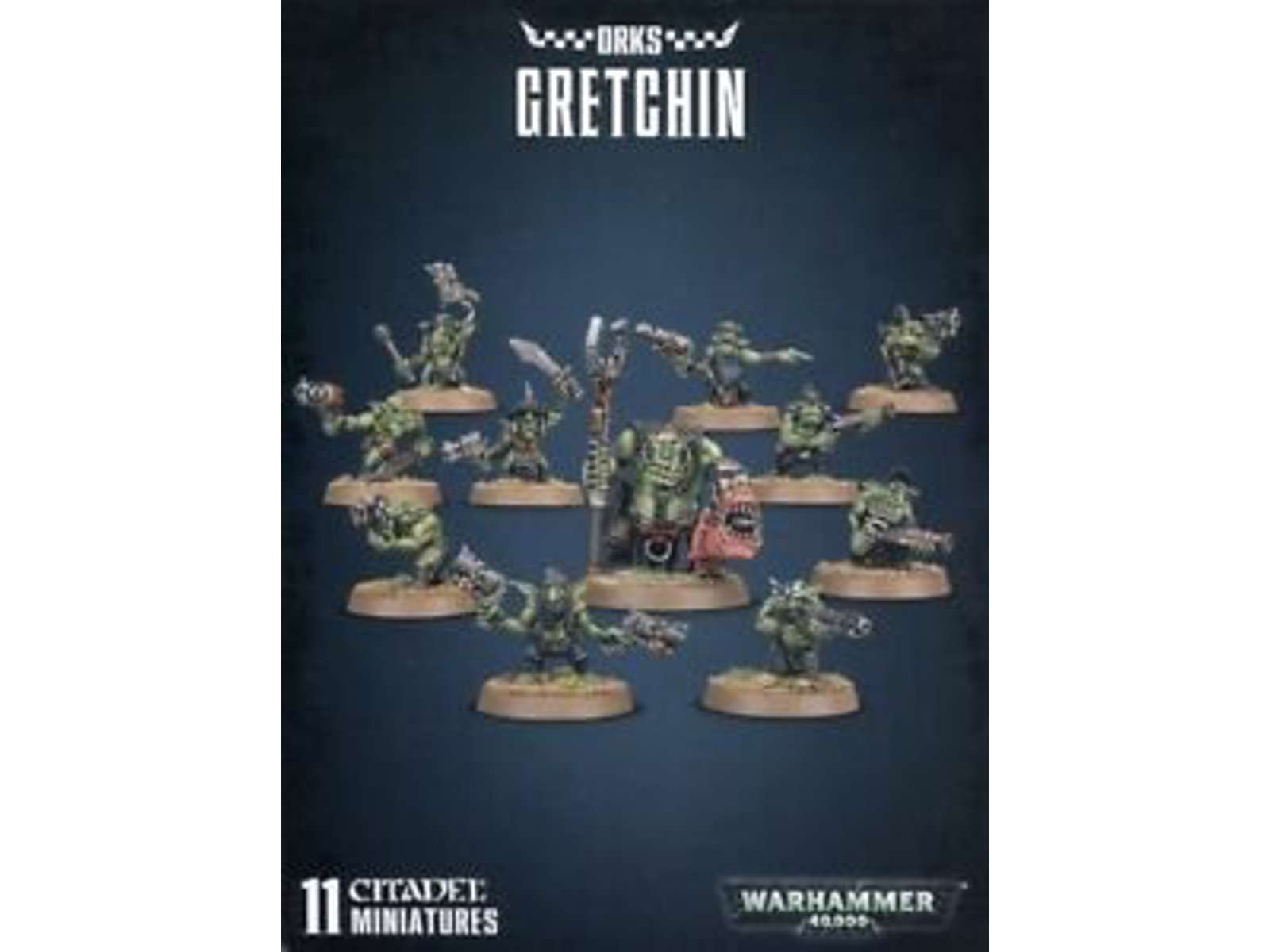 40.000 år ude i den mørke fremtid er der kun krig. Menneskeheden består hovedsageligt af kloner der tjener maskinguderne. De overmenneskelige Space Marines kæmper en bitter kamp mod alle Xenos - Orker, Tau, Eldar, Tyranids og de korrumperende kaoskræfter. Er du klar til at tage de første trin ind i det vældige univers, hvor vejen frem er dækket af dine fjenders blod og luften er tyk af kanonrøg, raketter, plasmakugler og laser? Warhammer 40K er en fantastisk hobby, hvor man selv samler sine figurer, maler dem, skaber flotte kamplandskaber og kæmper med sine venner. Orkerne er den ældste fjende i Warhammer 40K. Den grønskindede savlende horde er avlet til krig gennem årtusinder. De er utrættelige, stærke og altid klar på kamp. Orker formerer sig som kaniner, og der er en næsten endeløs mængde af dem. Men de er dummere end gold sandjord. Netop som du tror du har mødt den dummeste ork og han sprang sig selv i luften ved at prøve at spise en granat, bliver han erstattet af en der er mindre, dummere og stadig svært bevæbnet. Tæt på bunden af Ork fødekæden sidder Gretchins. Uden en til at lede dem kan de glemme de er i kamp og tage til frokost. Gretchins er bedst brugt til at kaste med når man ikke har flere patroner. Sættet indeholder:10 Gretchin figurer og 1 Runtherd figur med Squig hund. Figurerne i sættet er ikke samlet eller farvelagt og kræver derfor lim og maling. Vi anbefaler Citadel Plastiklim og Citadel Paint.