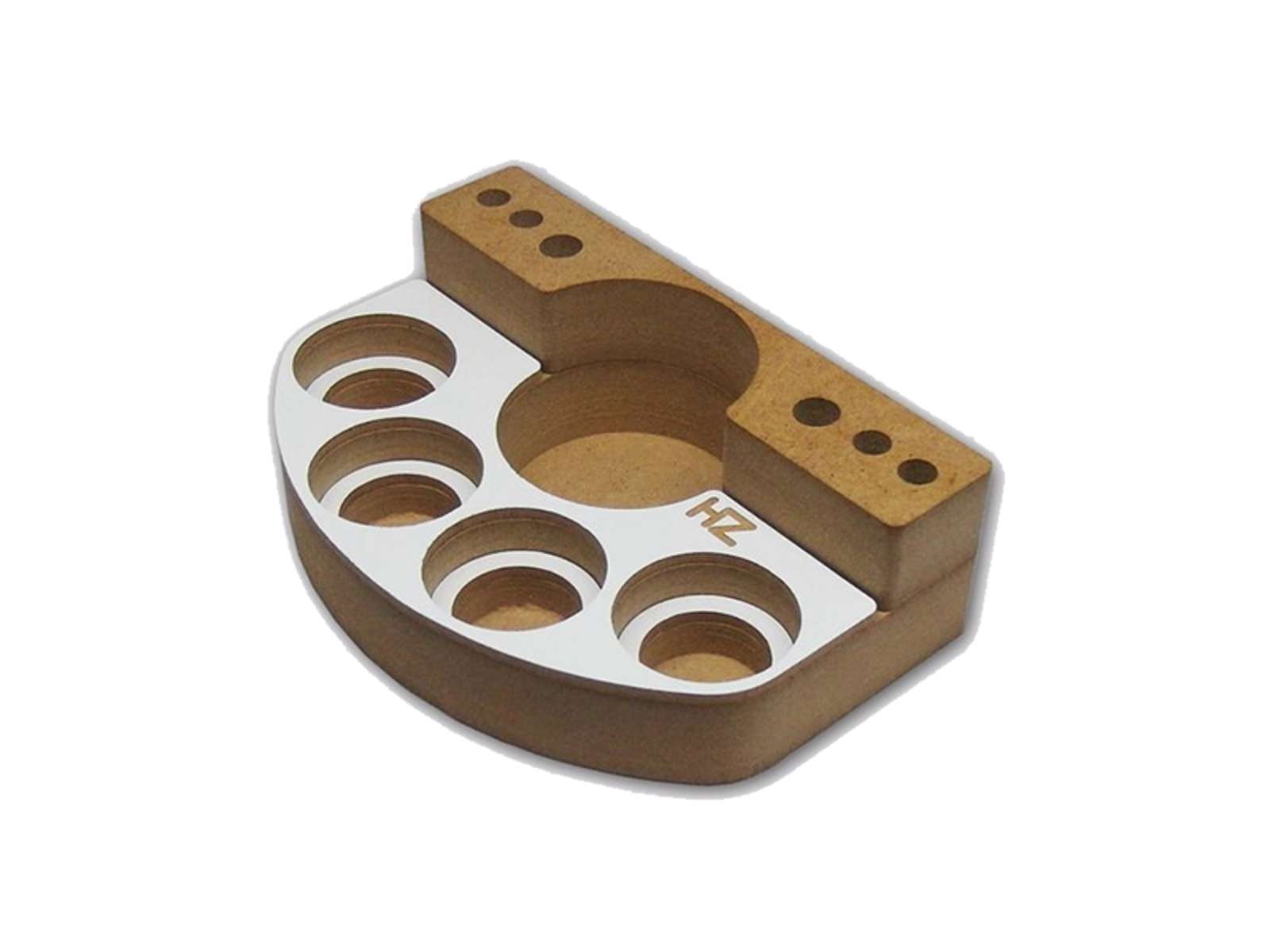 Painting Tools Stand er fremstillet i holdbar MDF-plade, som er hvidlamineret på oversiden. Hullerne til malinger i Painting Tools Stand, passer både til malinger fra The Army Painter og fra Citadel.