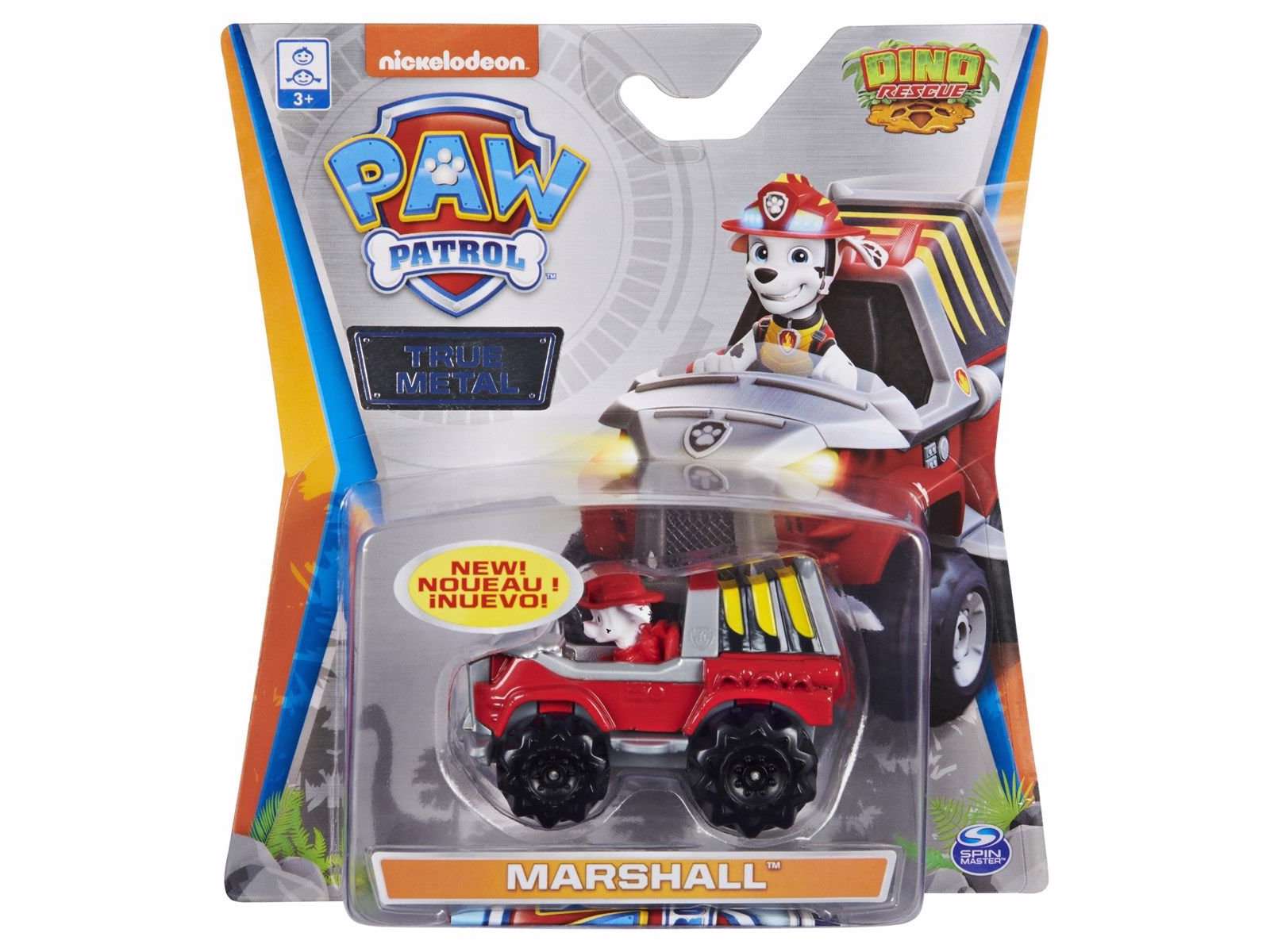 Heltevovserne fra Paw Patrol er klar til aktion. Denne pakke indeholder en Paw Patrol Dino Rescue metalbil af hvalpen Marshalls køretøj med Marshall bag rattet.