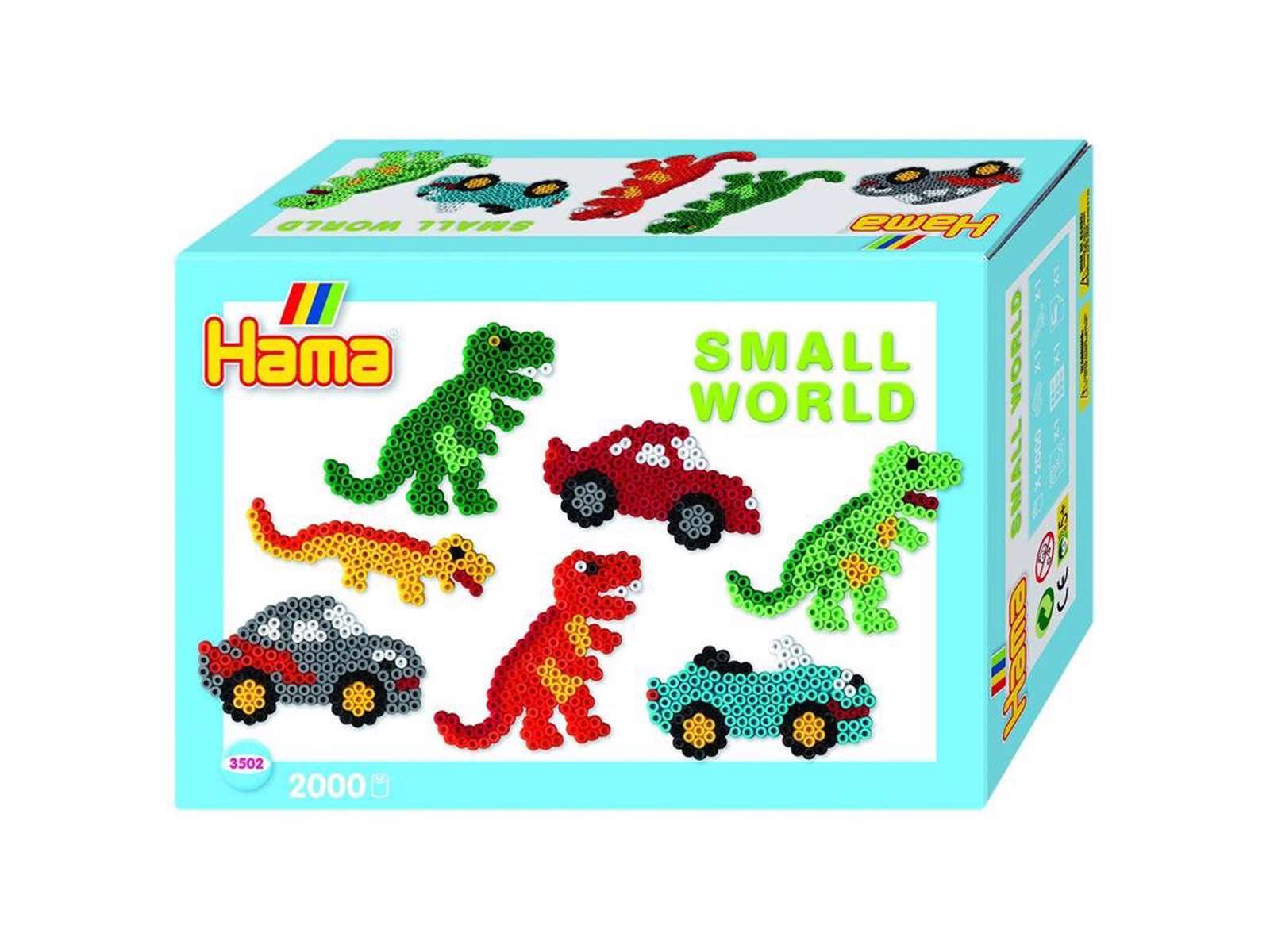 Hama perler Small World gaveæske - biler og dinosaurser.