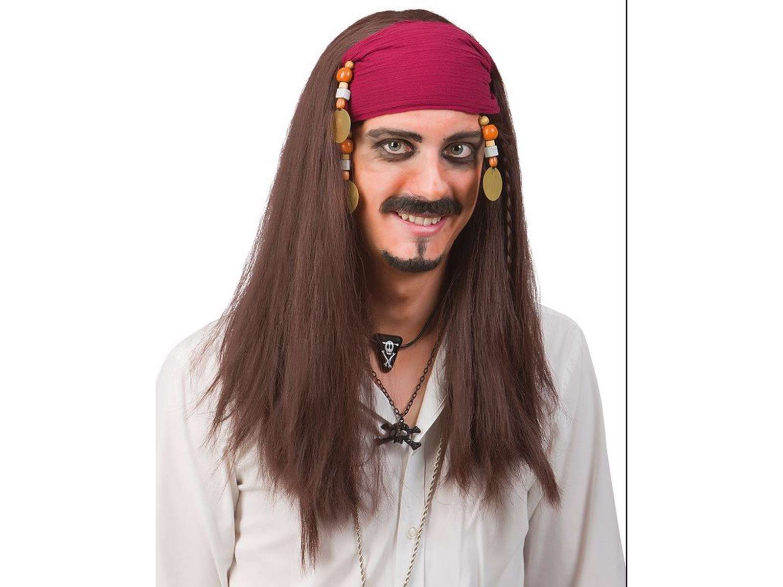 Pirat paryk til voksne. Bandana og perler er en del af parykken.