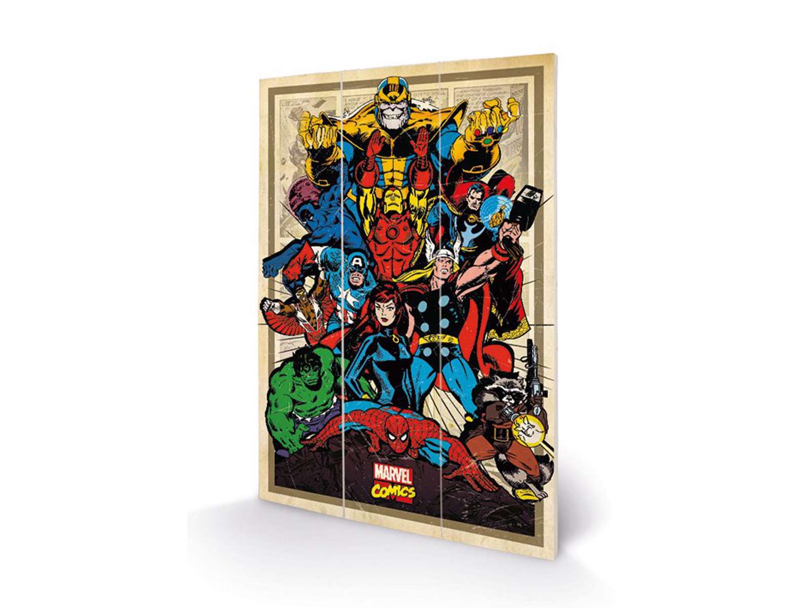 Sej plakat i træ med Avengers.
