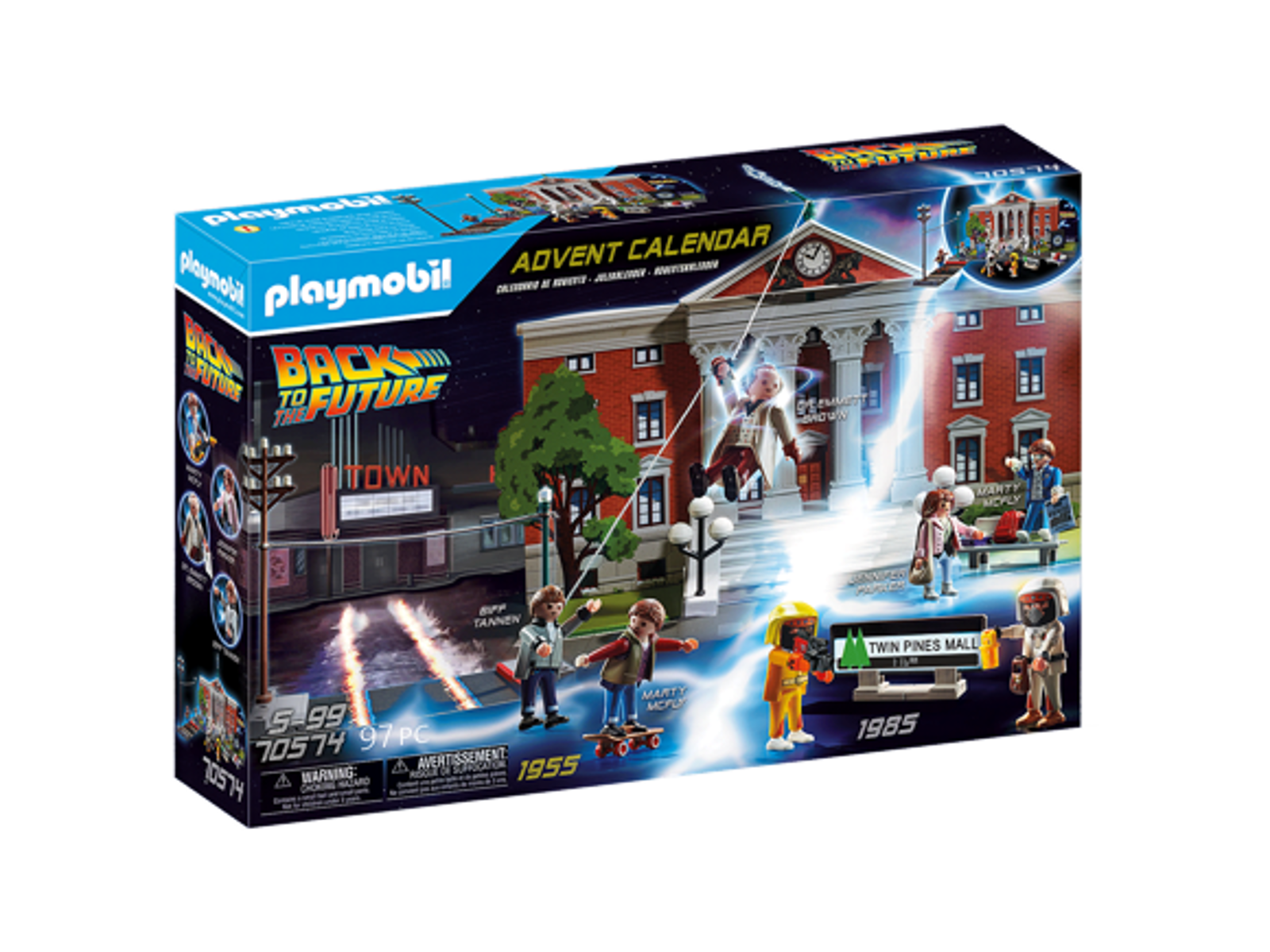 Nu starter nedtællingen til jul med den spændende PLAYMOBIL-julekalender ”Tilbage til fremtiden”! Bag hver låge gemmer sig en gave, en figur eller kultagtigt tilbehør, så børn (og voksne) er sikret 24 dage med en spændende rejse gennem tiden. Når alle overraskelser er fundet, fungerer æsken som kulisse til den legendariske torvescene. Efterlign ikoniske scener fra Tilbage til fremtiden og Tilbage til fremtiden II! For eksempel med Marty McFly og Jennifer Parker eller Doc Brown og Marty på parkeringspladsen ved indkøbscentret Twin Pines Mall i 1985.