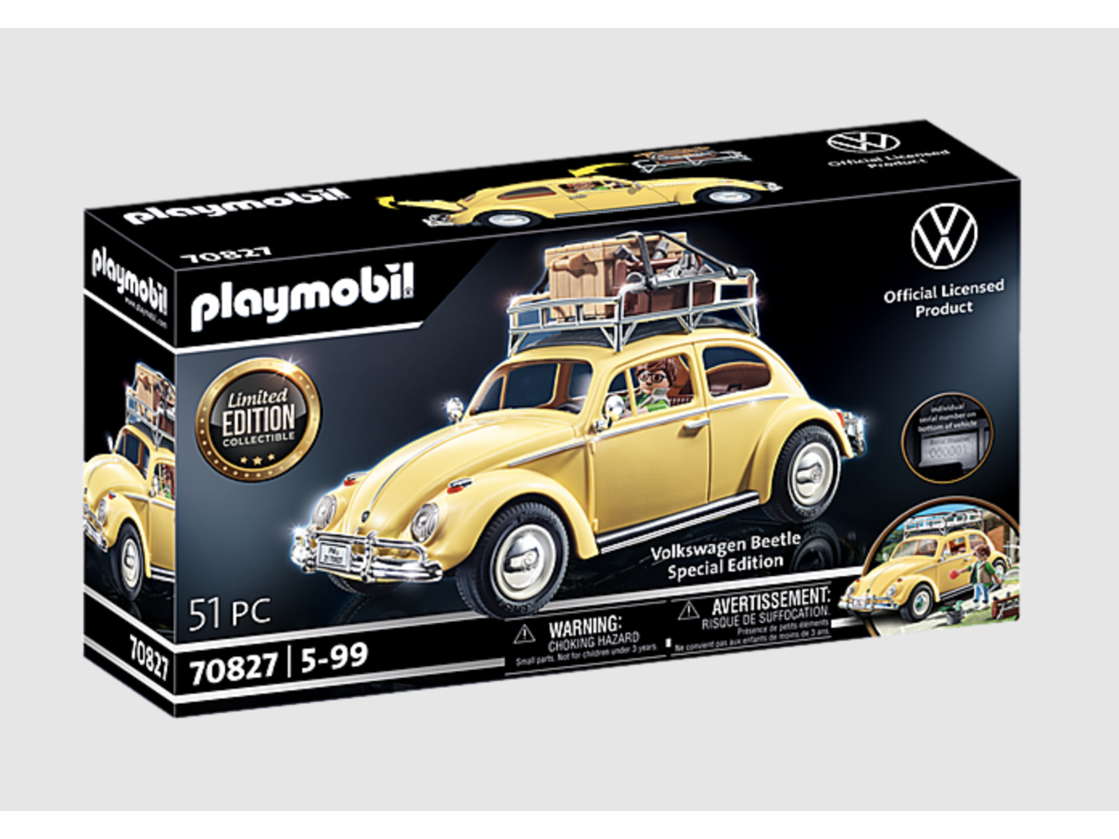 Boblen. En ægte klassiker. Med svungne skærme, lodret forrude, 4-cylindret boksermotor og lakeret i en laber lysegul farve. Tag taget af den og opdag, hvor præcist selv interiøret er gengivet af Playmobil®!