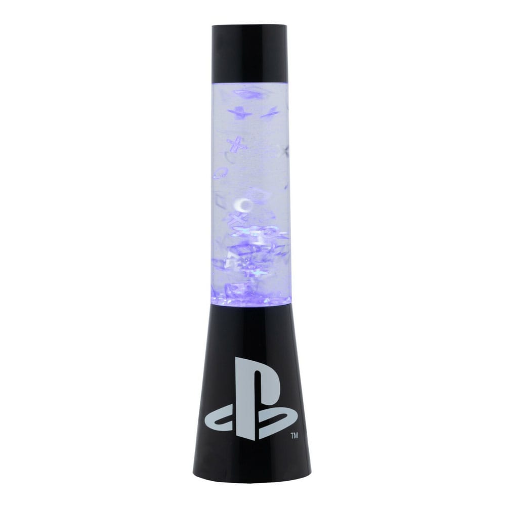 Brighten up your bedroom or gaming room with this stunning PlayStation Flow Lamp. The 33cm (13 inch) tall plastic lamp is filled with flowing silver foil shapes and glitter. Turn the light on to watch the foil PlayStation controller icons (triangle, circle, cross and square) float around while casting a blue glow of their rhythmic motions across your room. The PlayStation Flow Lamp provides an amazing sensory experience for console gamers. Features: - PlayStation themed sensory light - 33cm (13 inch) tall glitter lamp - Powered by USB (cable not included) or 3x AAA batteries (not included) - Officially licensed PlayStation product