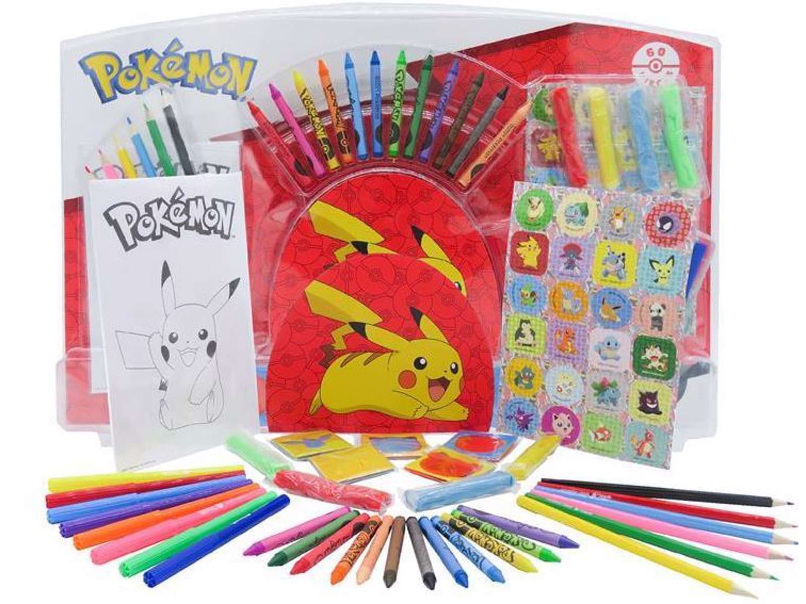 Lækkert skrivesæt fra Pokémon med 60 dele. Her er masser af tuscher, farver, farveblyanter, klistermærker og meget mere, så man rigtig kan slå sig løs med kreative tegneprojekter!